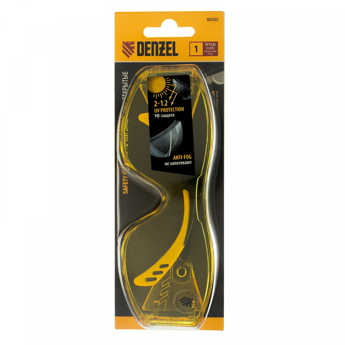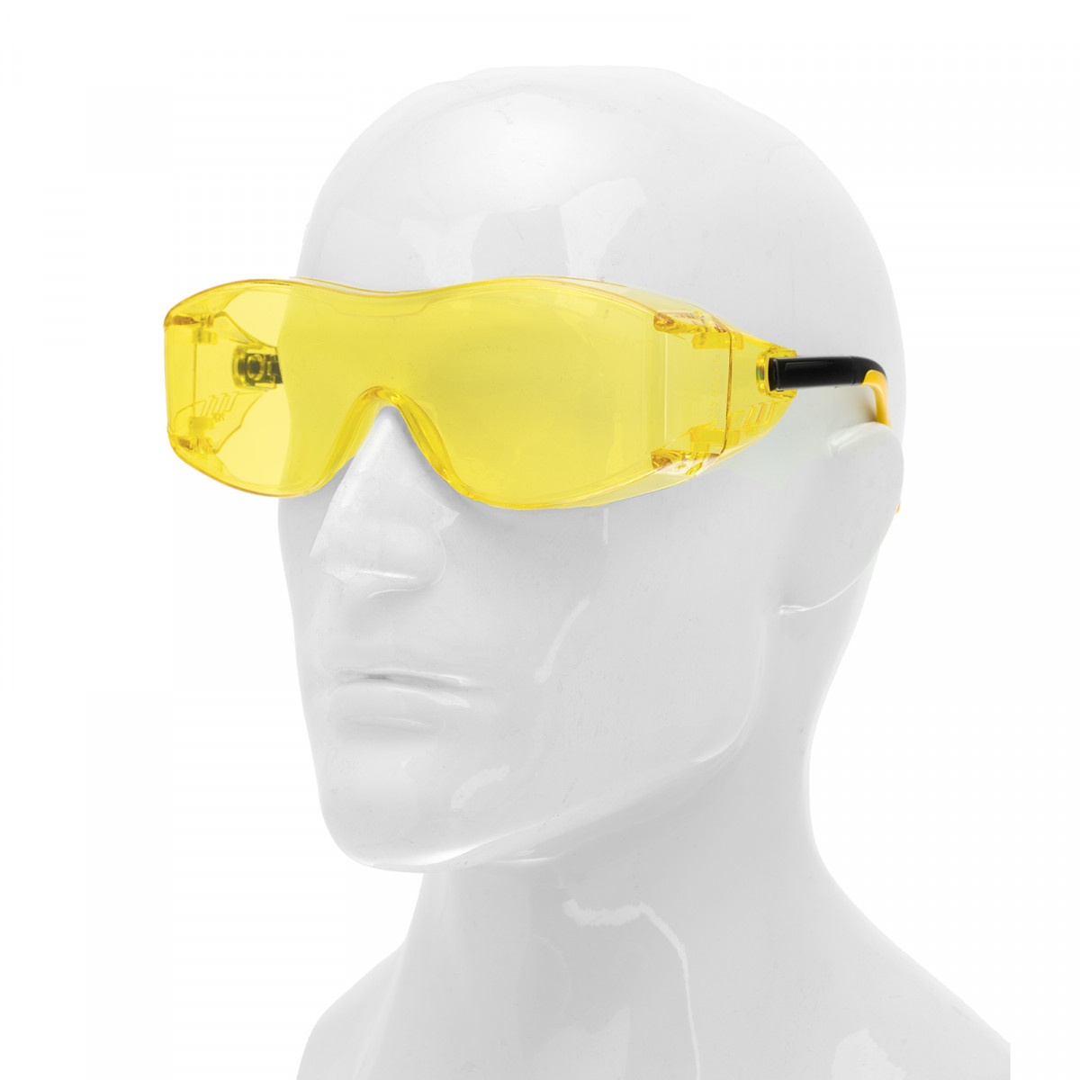 Очки защитные открытые, поликарбонатные, увеличенная желтая линза, регулируемые дужки Denzel