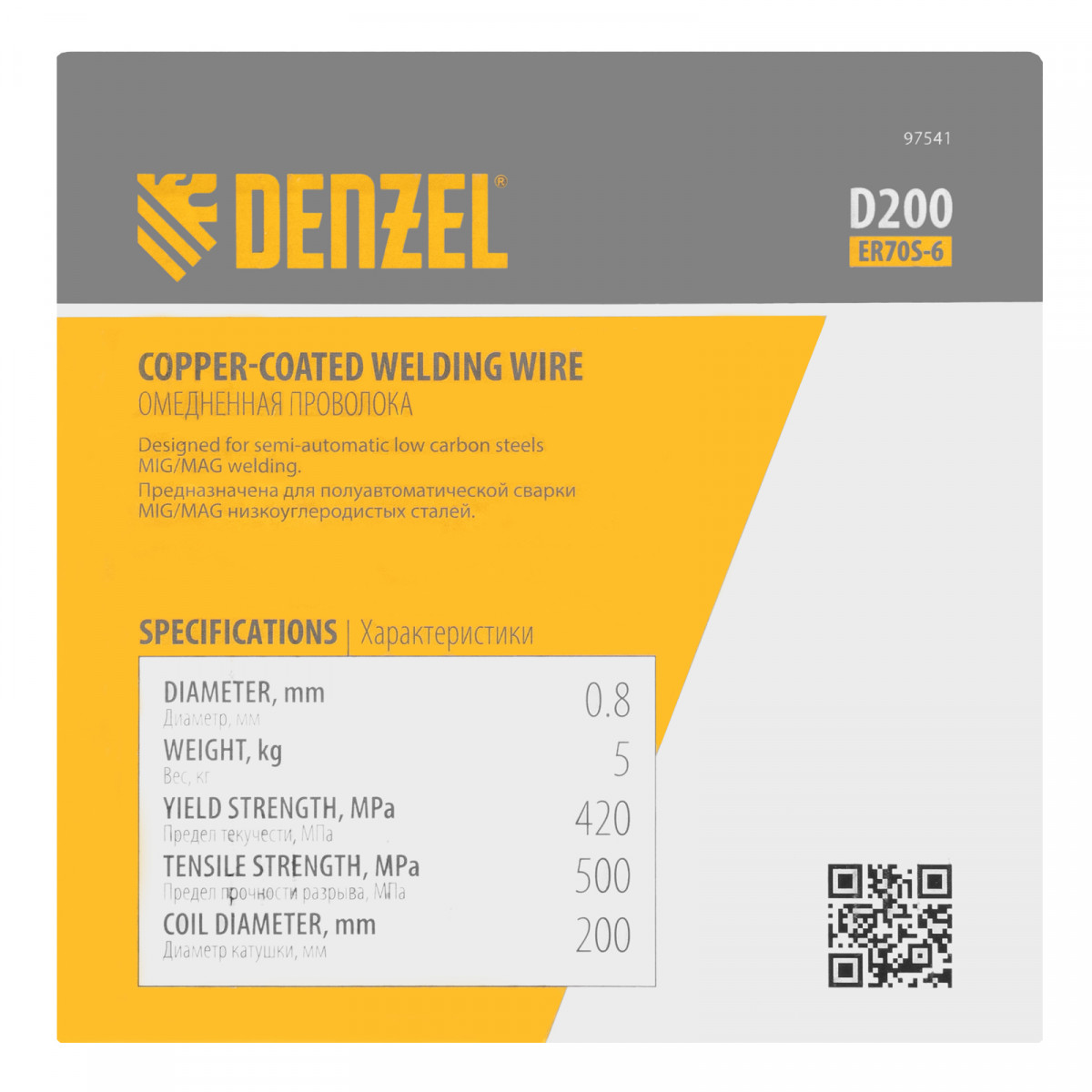 Омедненная проволока ER70S-6, диам. 0,8 мм, 5 кг, диам. катушки D200 Denzel