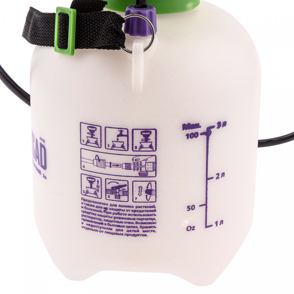 Ручной опрыскиватель Palisad 64743 с баком объемом 3 л, горловиной, насосом, шлангом и разбрызгивателем, используется для ухода за растениями на грядках, клумбах и в теплицах. Устройство предназначено для распыления пестицидов и внесения удобрений. Широкое заливочное горло позволяет быстро наполнить емкость раствором. Ремень для ношения на плече позволяет освободить руки для более комфортной работы.