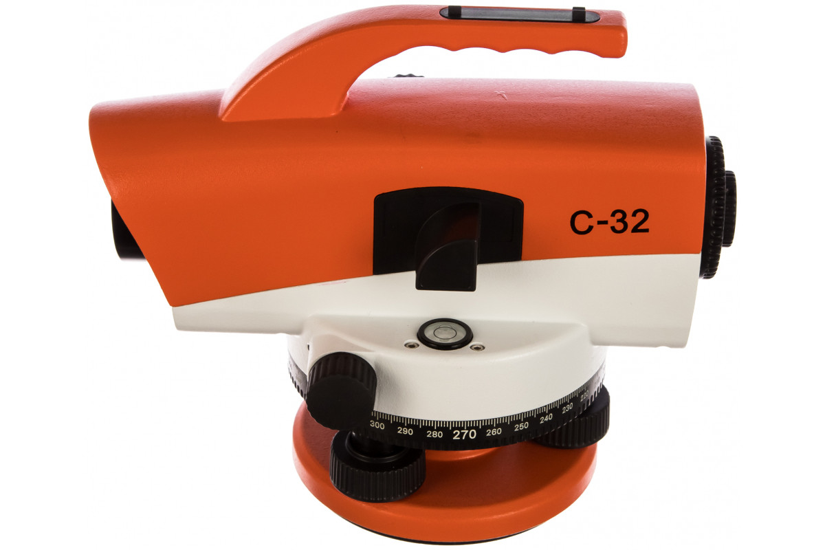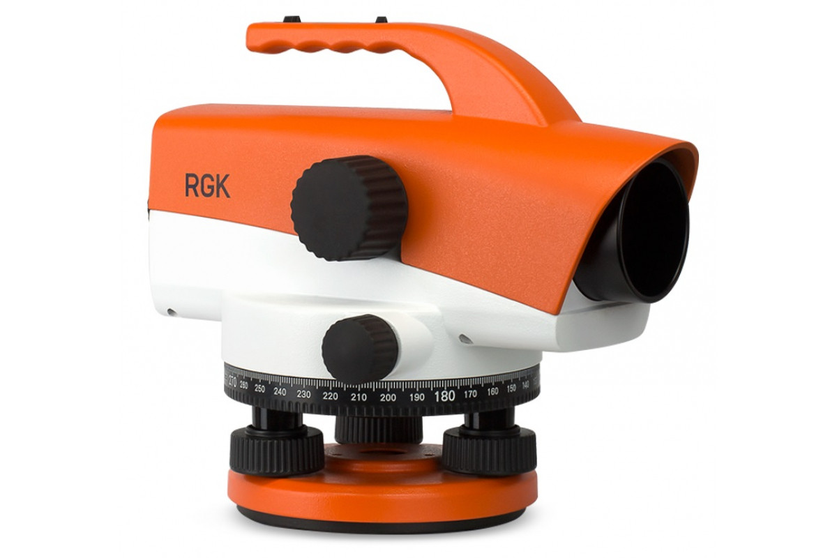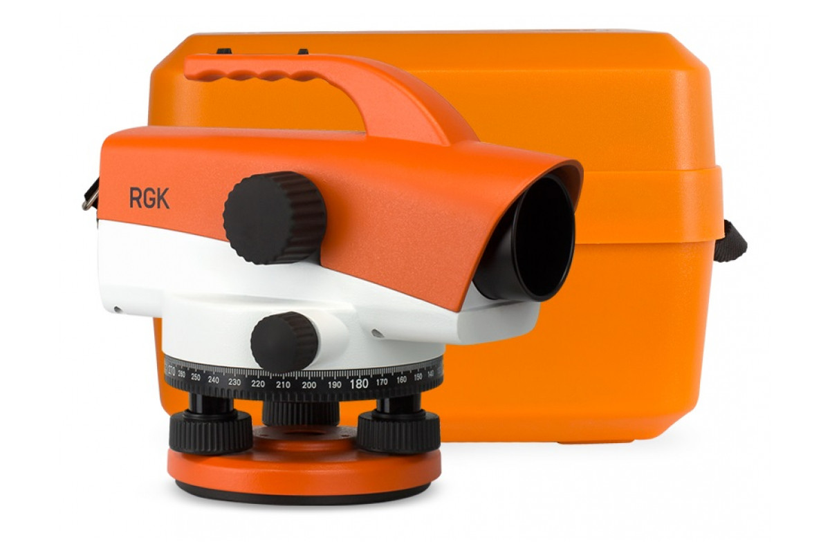 Оптический нивелир RGK С-32 работает без сбоев и помех благодаря магнитному демпферу. Материалом корпуса служит металл, который гарантирует высокую прочность конструкции и защиту от механических повреждений. Яркая окраска делает инструмент легко заметным на рабочей площадке. Нивелир широко применяется в процессе ведения геодезических работ.