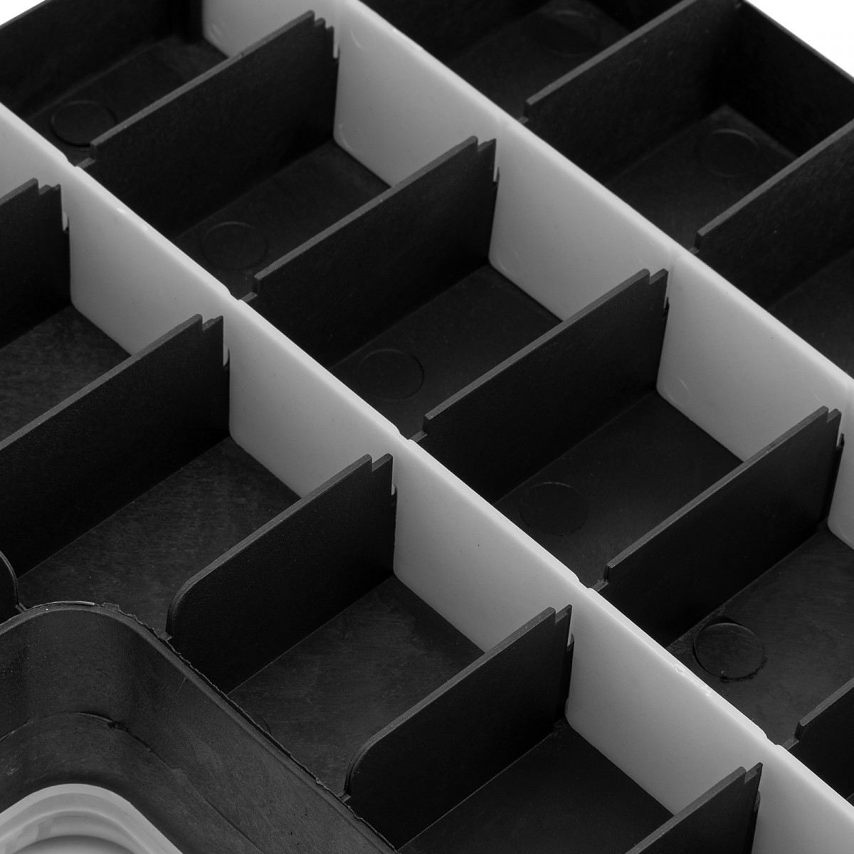- Органайзер оснащен 32 секциями различного размера для удобства хранения мелких и крупных предметов.
