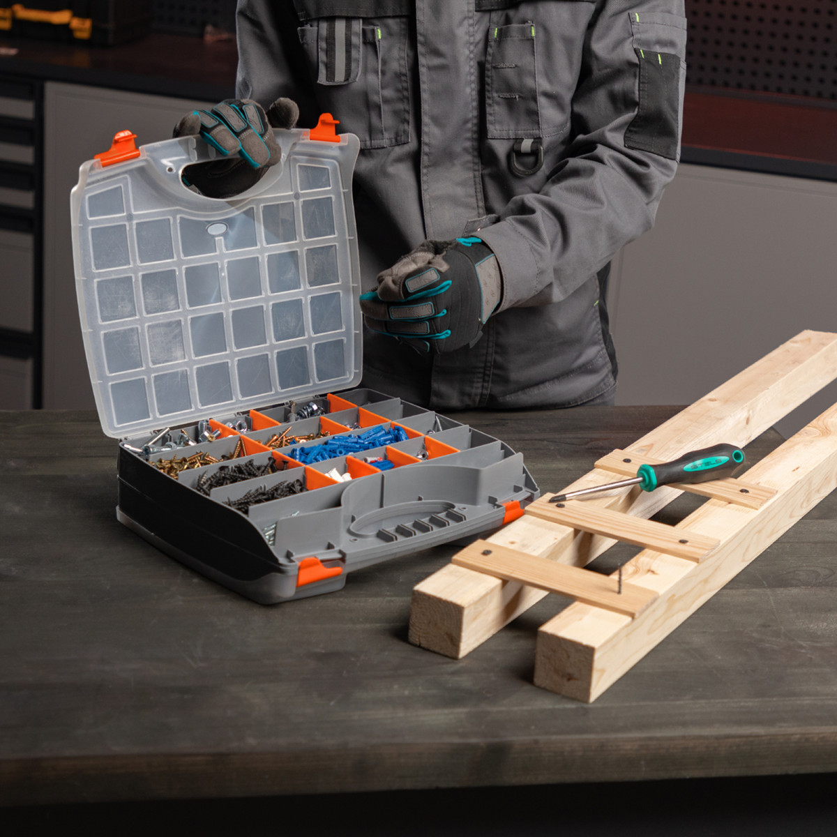 52 секции органайзера позволяют организовать хранение в зависимости от потребностей.