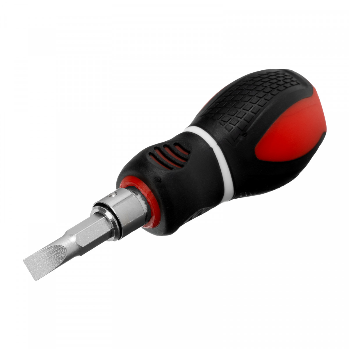 Комбинированная отвертка Matrix 11581 из стали CrV, с двухкомпонентной рукояткой и стержнем длиной 38 мм, позволяет монтировать и демонтировать крепеж типоразмера SL6,0 и PH2. Она рассчитана на профессиональное использование, в частности, осуществление строительных и монтажных работ. Благодаря длине стержня 38 мм и укороченной рукоятке можно производить работы в ограниченном пространстве.