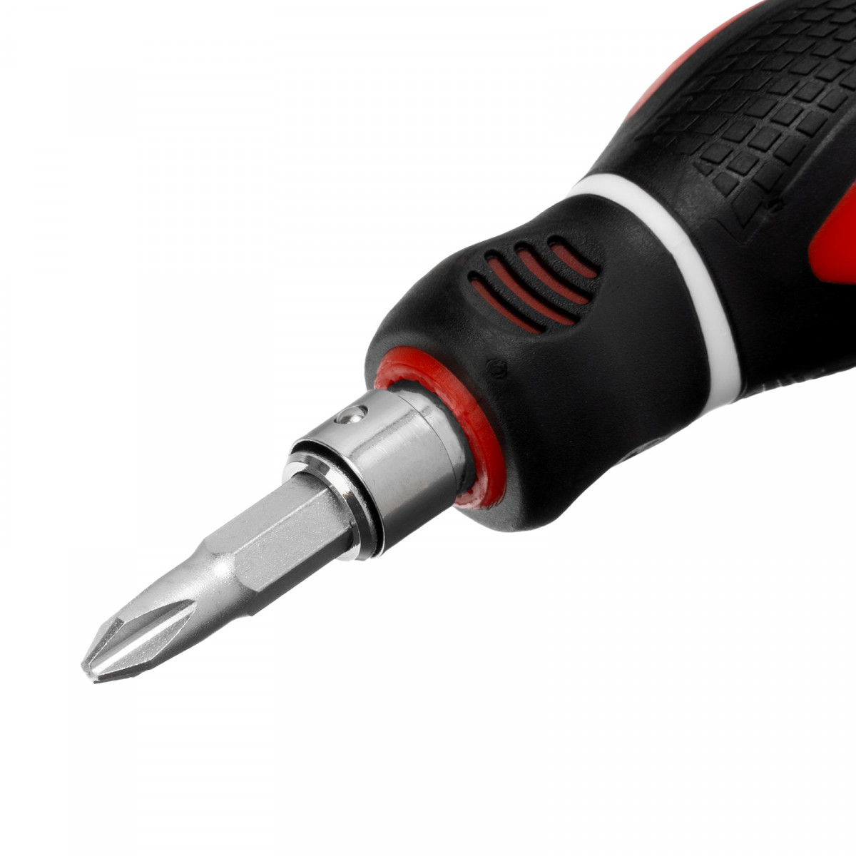 - Двухсторонний стержень выполнен из легированной хромованадиевой стали, рабочая часть закалена до твердости 50-55 HRC, поэтому отвертка выдерживает высокие нагрузки.