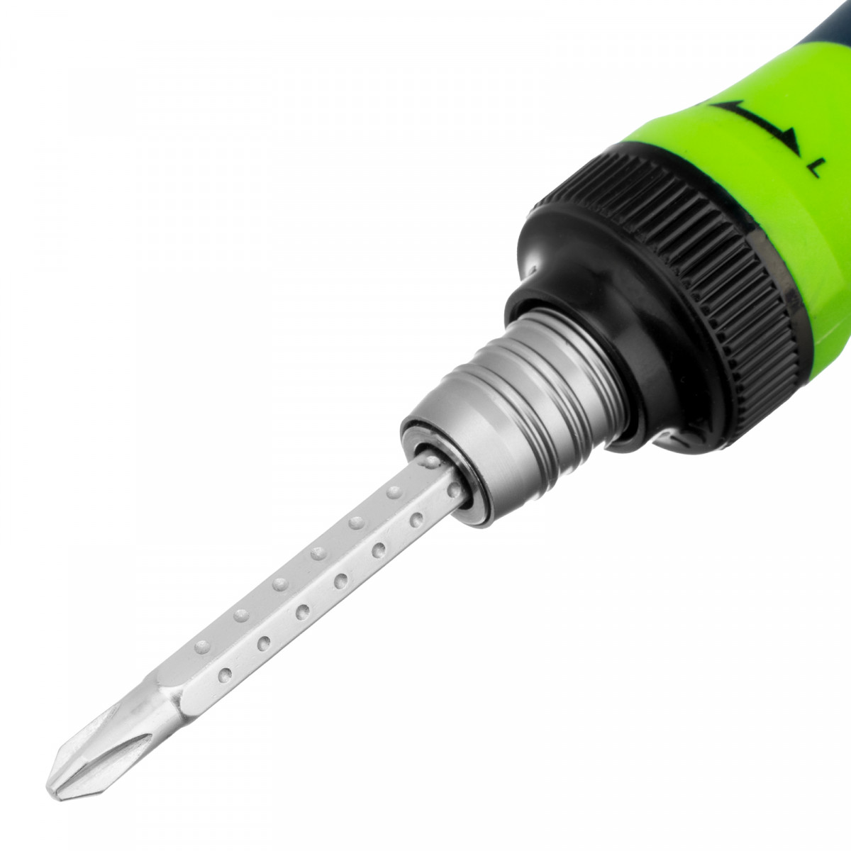 Реверсивная комбинированная отвертка Сибртех 13368 с двусторонним стержнем из стали CrV предназначена для работы с крепежом типоразмеров PH2 и SL6. Используется при проведении мелких ремонтных и монтажных работ в быту. Благодаря трещоточному механизму отвертку не требуется постоянно перехватывать. Длина стержня 160 мм позволяет работать с глубоко расположенным крепежом.