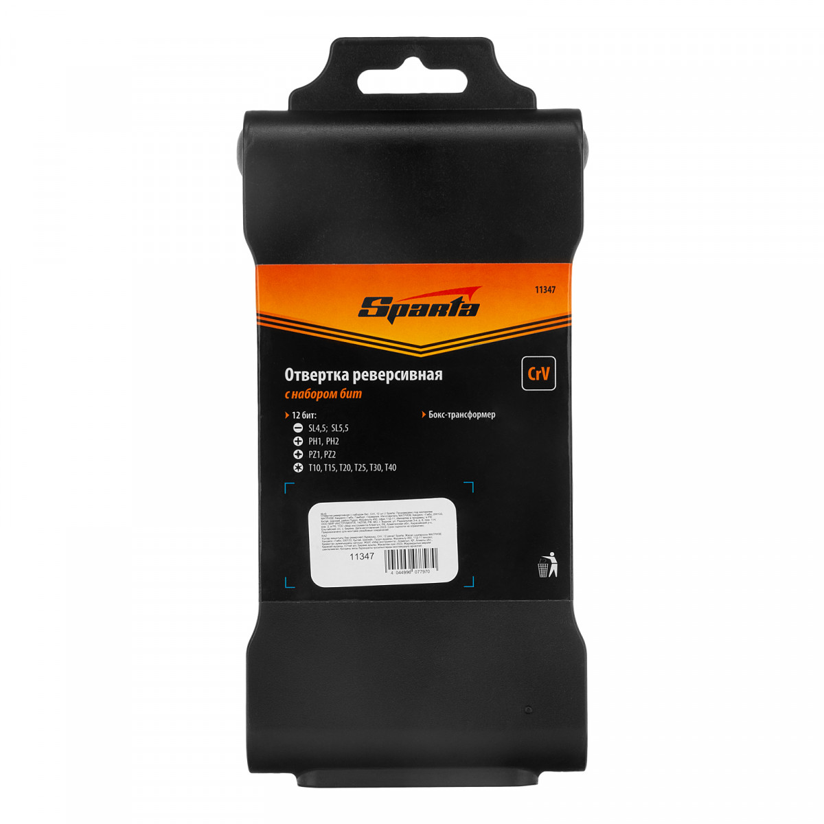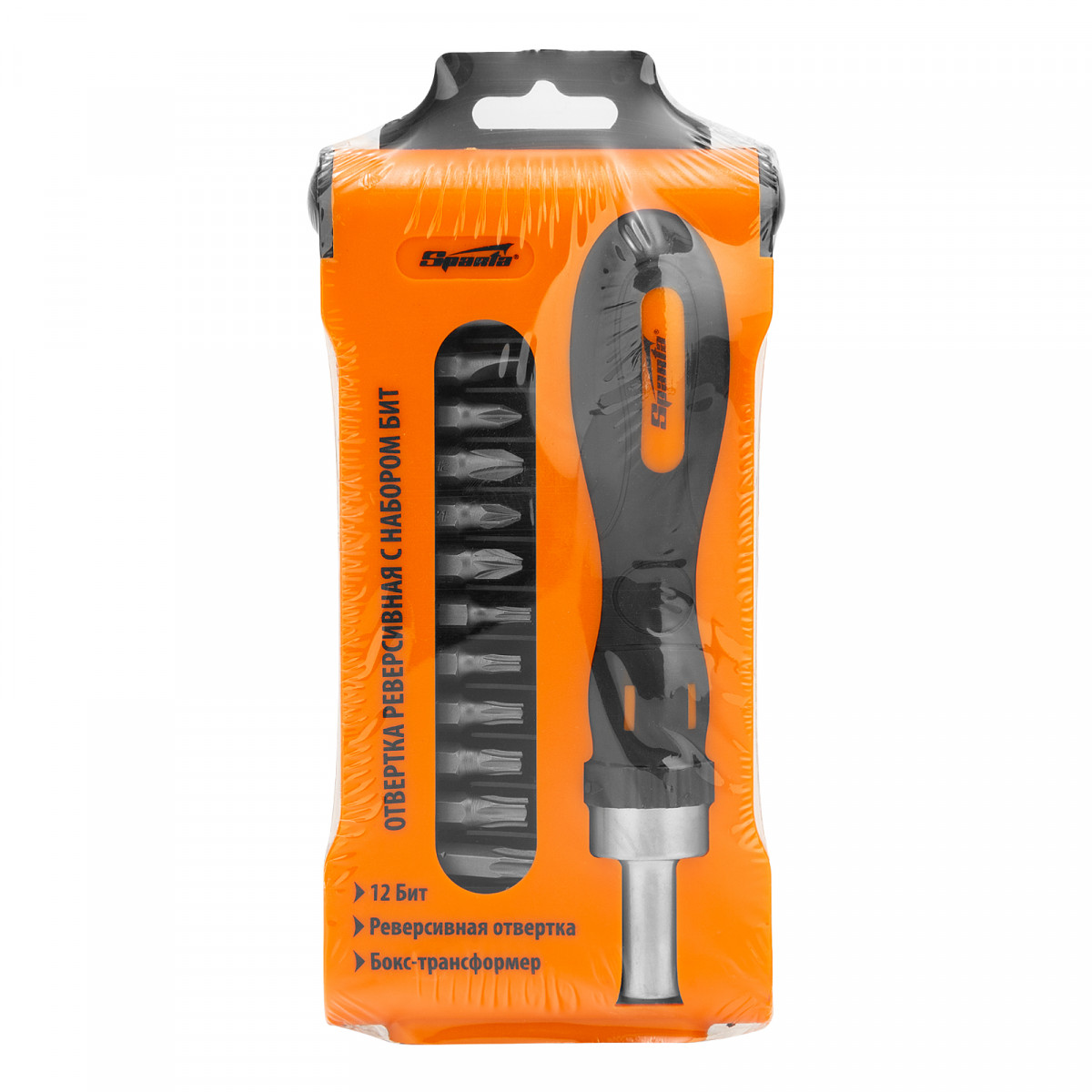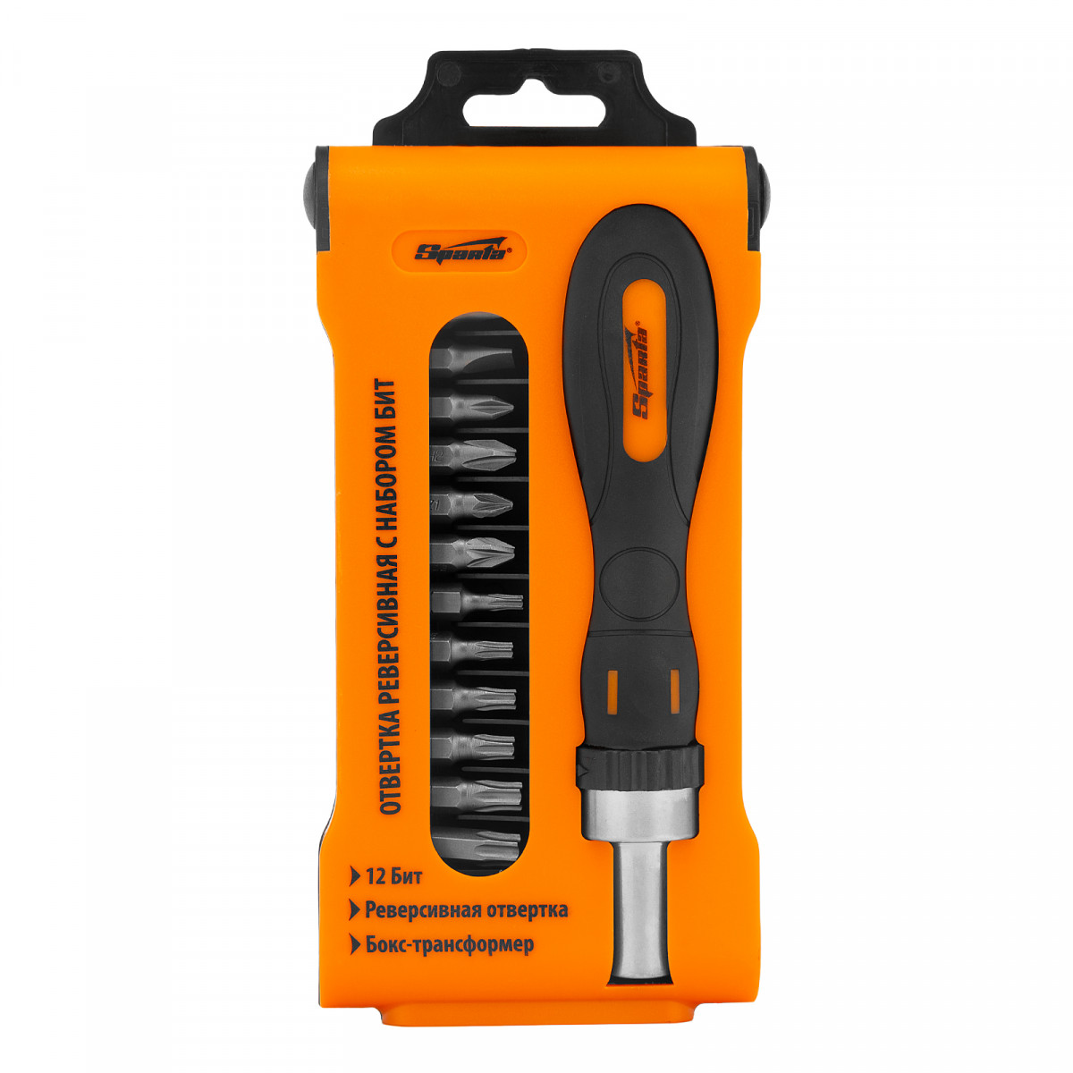 Отвертка реверсивная с набором бит, CrV, 12 шт, Sparta