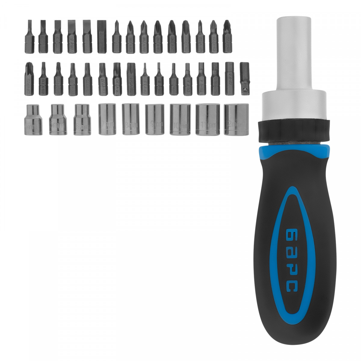 Отвертка реверсивная с набором бит и торцевыми головками, 41 шт Барс