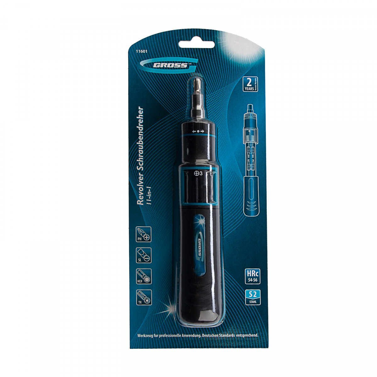 Отвертка реверсивная с револьверным механизмом, 11 шт, сталь S2 Gross