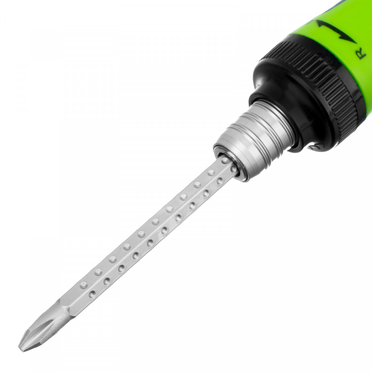 - Удобная работа в труднодоступных местах — длина стержня составляет 160 мм, степень его выступания из отвертки можно регулировать.
