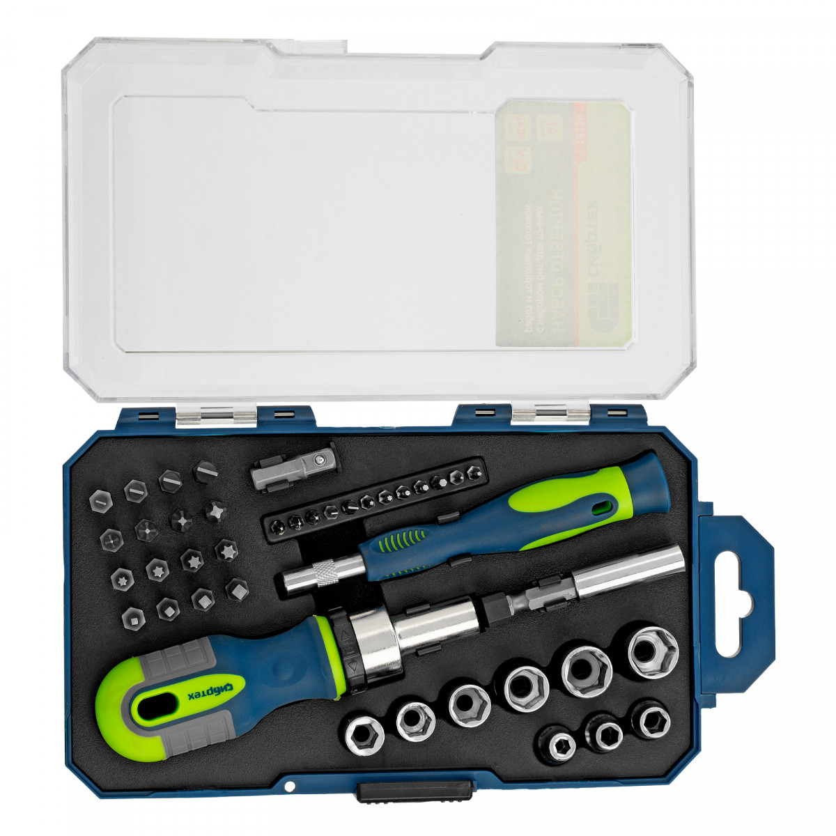 Отвертки реверсивные с набором бит и торцевыми головками, 41 шт, CrV Сибртех