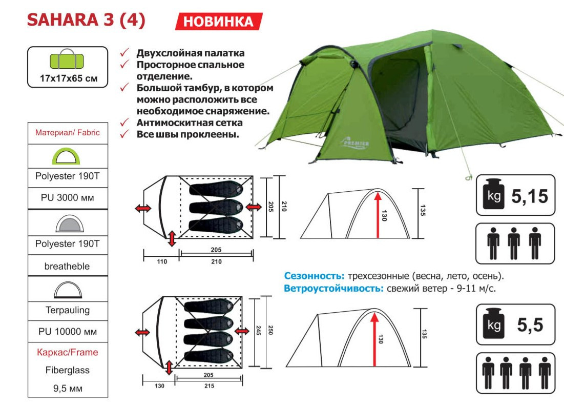 Палатка SAHARA-3 PREMIER - трехместная палатка универсальной серии, которая идеально подойдет для походов и путешествий.