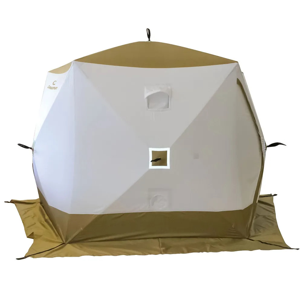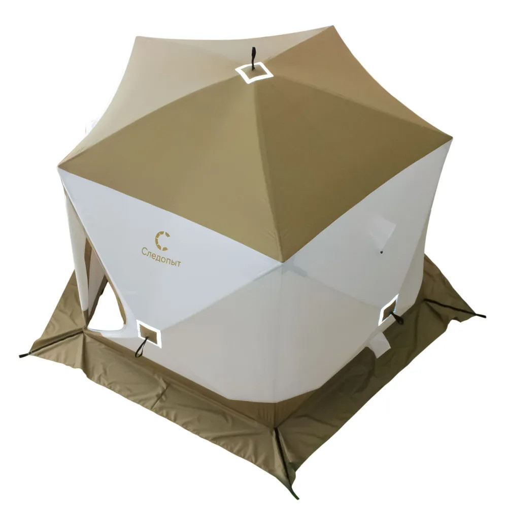 Палатка зимняя СЛЕДОПЫТ Premium 5 стен (2,8 х 2,9 м) h-2,05 м S по полу 5,6 кв.м 3 слоя бел/олив