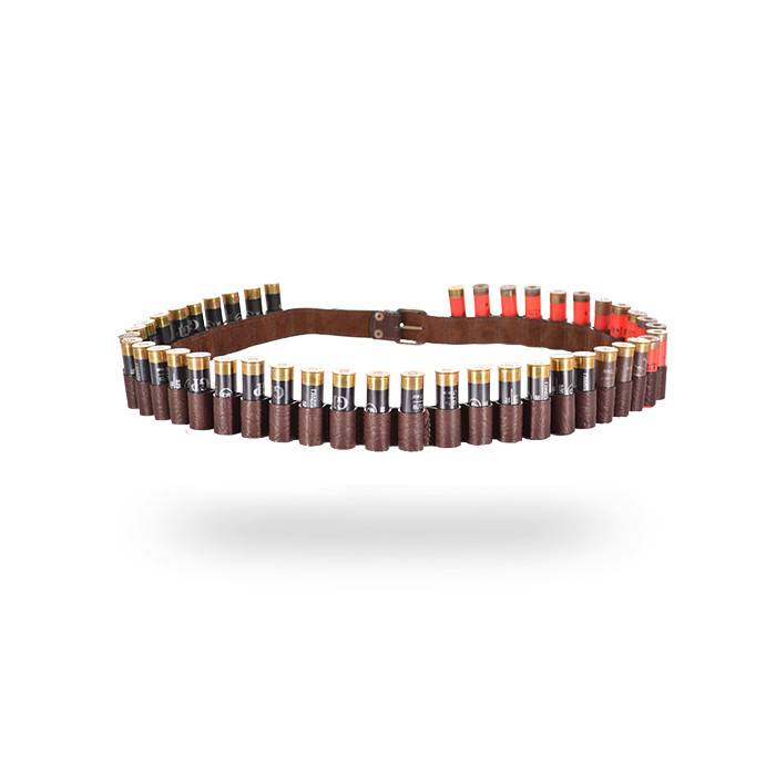Материал: натуральная кожа и велюр. Для патронов гладкоствольного оружия (44 шт., 12 калибра). Предназначена для размещения, хранения, ношения и быстрого доступа к значительным объёмам боеприпасов. Ячейки нашиты на ремень,