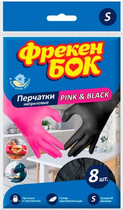Перчатки Нитриловые MIX розовые+черные во флоупаке 8шт Фрекен БОК S