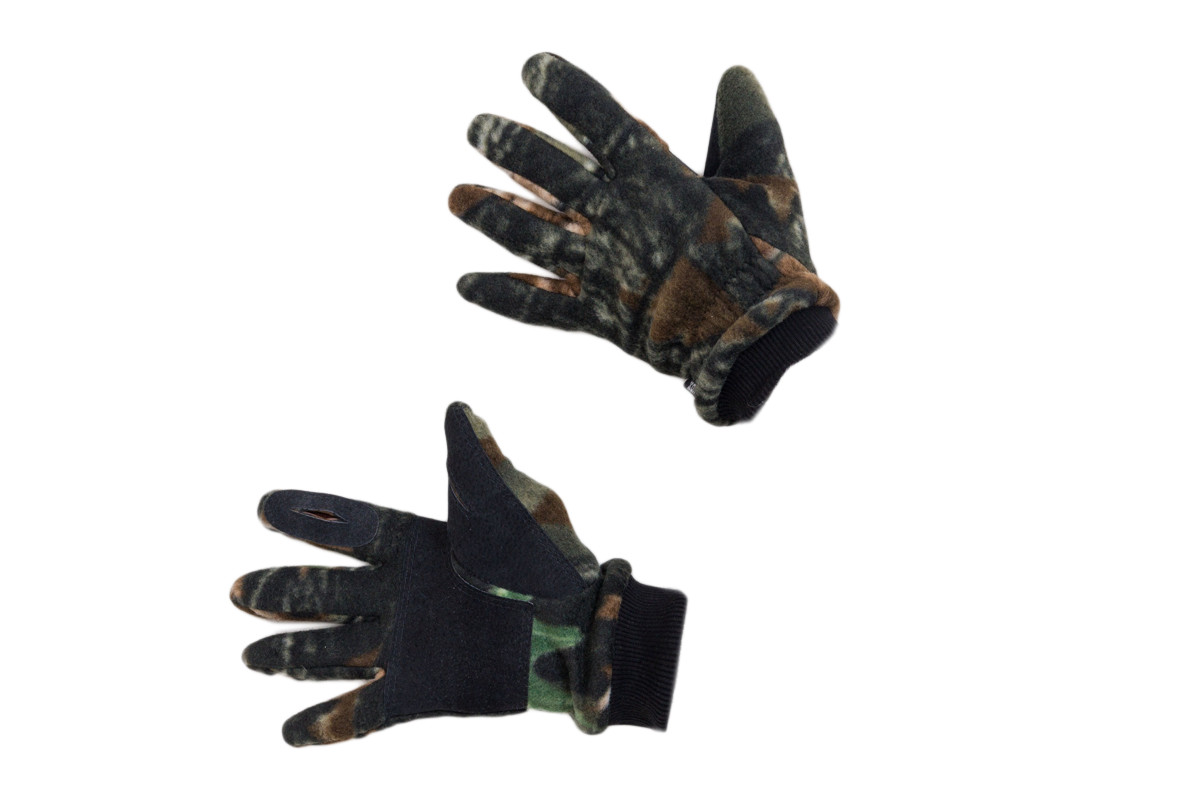 Перчатки Охотника с кожаными накладками флис, темный лес Холстер