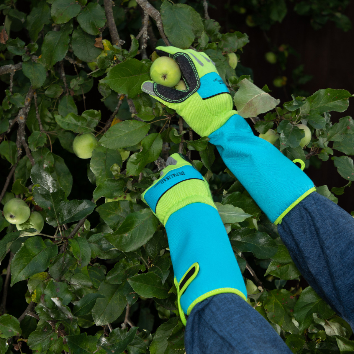 Садовые перчатки Palisad Luxe 67981 размера 7, с удлиненной манжетой, пригодятся во время ухода за растениями на дачном участке. Отличаются повышенной устойчивостью к проколам, поэтому надежно защищают кожу рук от механических повреждений.