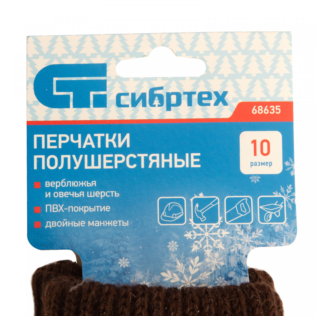 Перчатки трикотажные, двойные, верблюжья и овечья шерсть, ПВХ покрытие, Сибртех