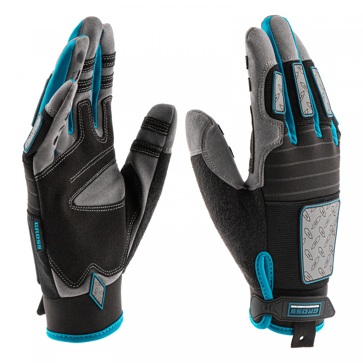Универсальные усиленные перчатки Gross DELUXE 90326 с защитными накладками, размера XL (10), служат для защиты рук от механических повреждений и образования мозолей. Тонкие и износостойкие защитные накладки из ПВХ на тыльной стороне ладони и пальцах дополнительно предохраняют руки от механических повреждений. Формованные накладки на ладонях препятствуют появлению синяков и ссадин. Изделия могут использоваться при проведении строительных и ремонтных работ, а также во время занятий спортом или активного отдыха.