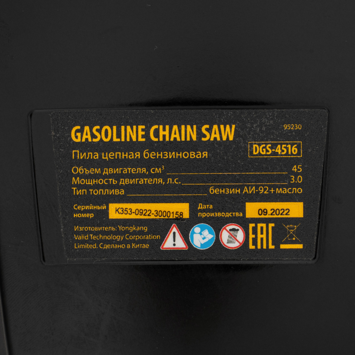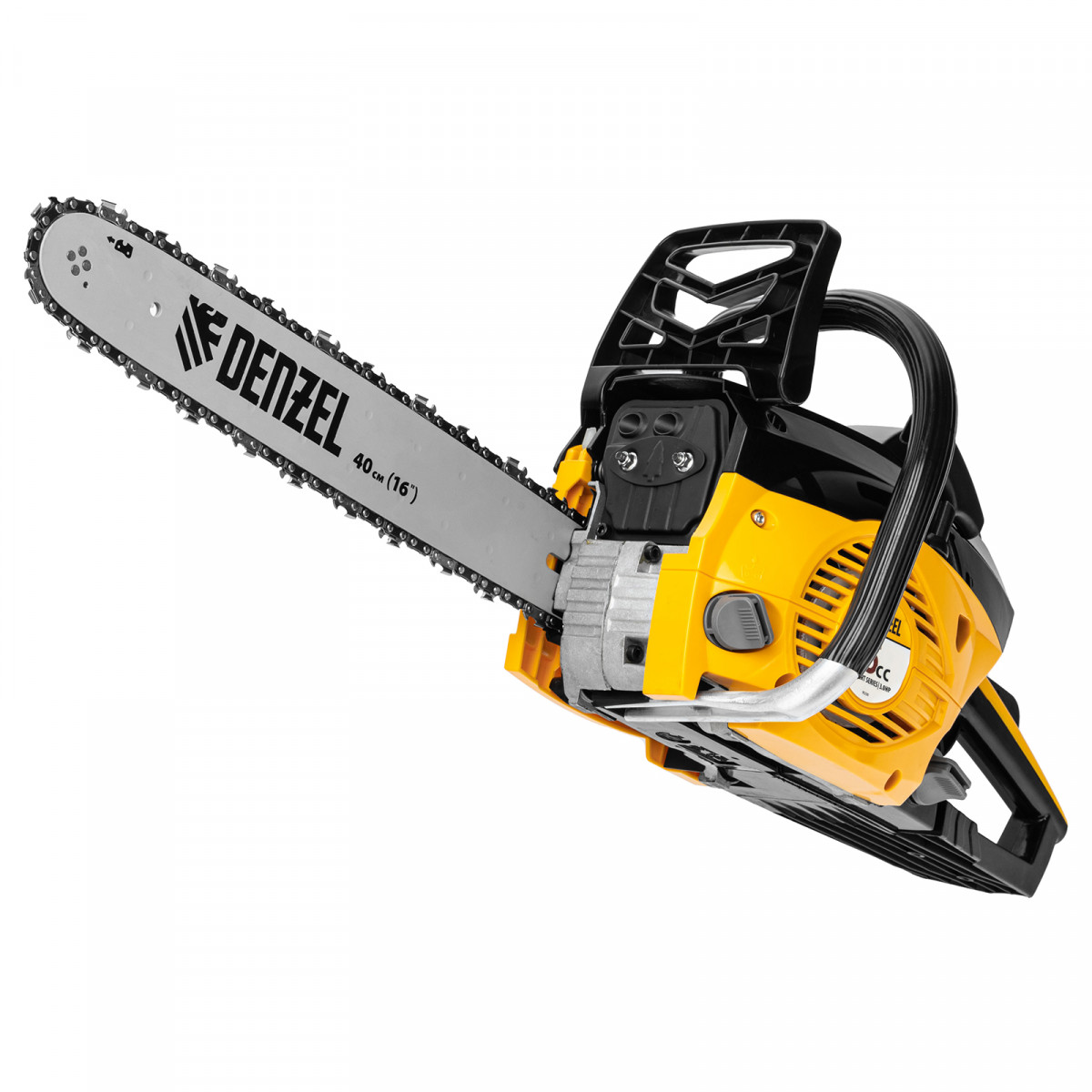 Пила цепная бензиновая DGS-4516, шина 40 см, 45 см3, 3 л.с, шаг 3/8, паз 1.3 мм, 57 звеньев Denzel