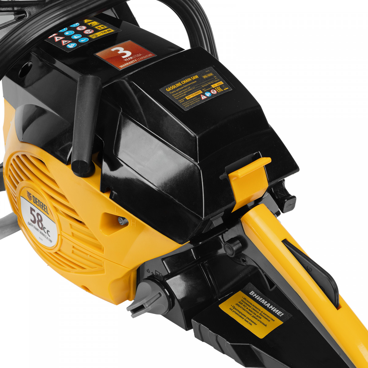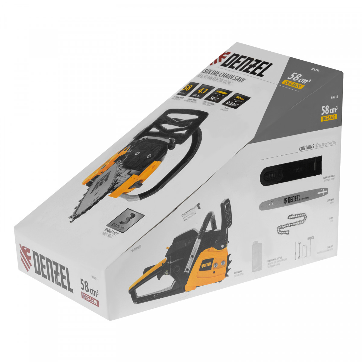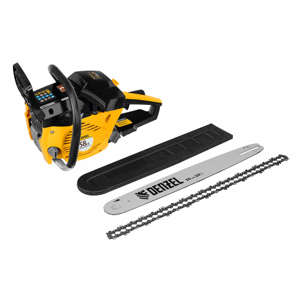 Пила цепная бензиновая DGS-5820, шина 50 см, 58 см3, 4.1 л.с, шаг 0.325, паз 1.5 мм, 76 звеньев Denzel