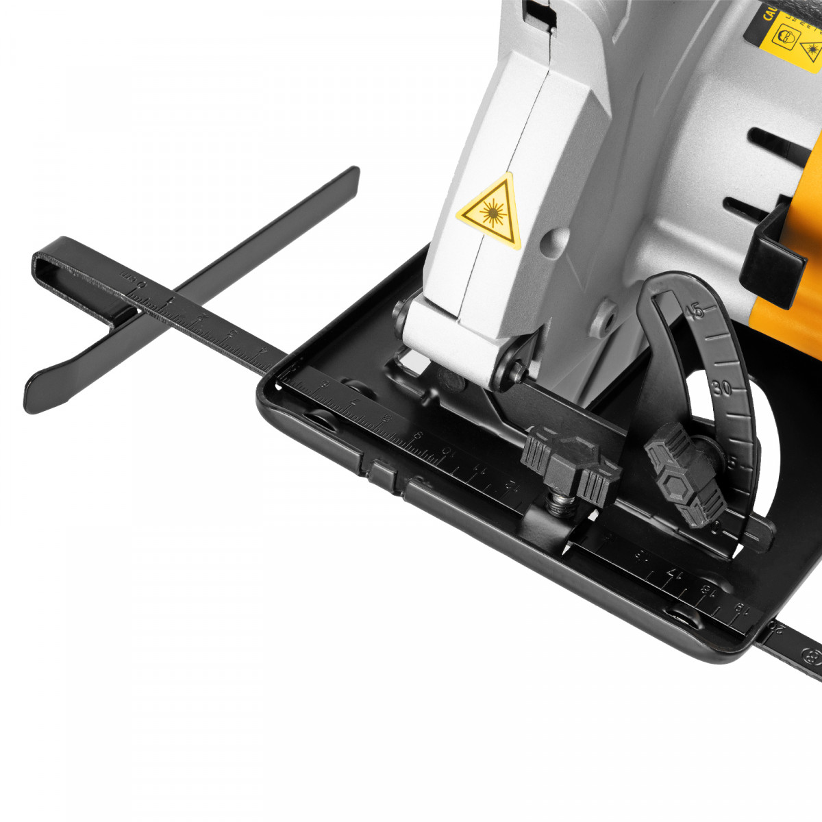 • Высокая точность — лазерный указатель, показывающий линию предстоящего среза, и стальная параллельная направляющая помогают осуществлять ровные прямые пропилы без дополнительной разметки.