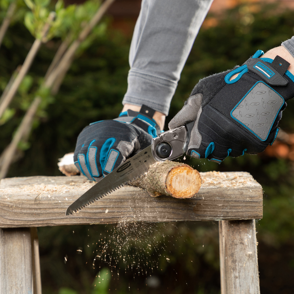 Складная пила по дереву Gross PIRANHA 23620 с полотном длиной 130 мм, калеными зубьями с 3D-заточкой и шагом 8-9 TPI, с обрезиненной рукояткой, в кобуре, предназначена для кемпинга и работы в саду. Подходит для продольного и поперечного пиления древесины. Зубья с трехгранной заточкой и шагом 8-9 TPI обеспечивают быструю распиловку. Пила легко складывается, поэтому ее можно брать с собой в поездку, поход или на пикник, не опасаясь пораниться в процессе транспортировки. В комплект входит чехол-кобура, которую можно повесить на ремень.