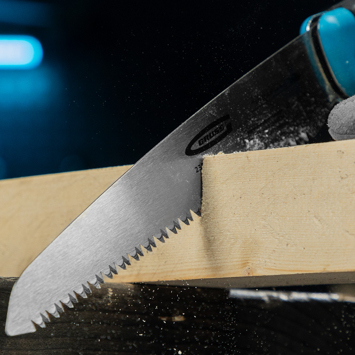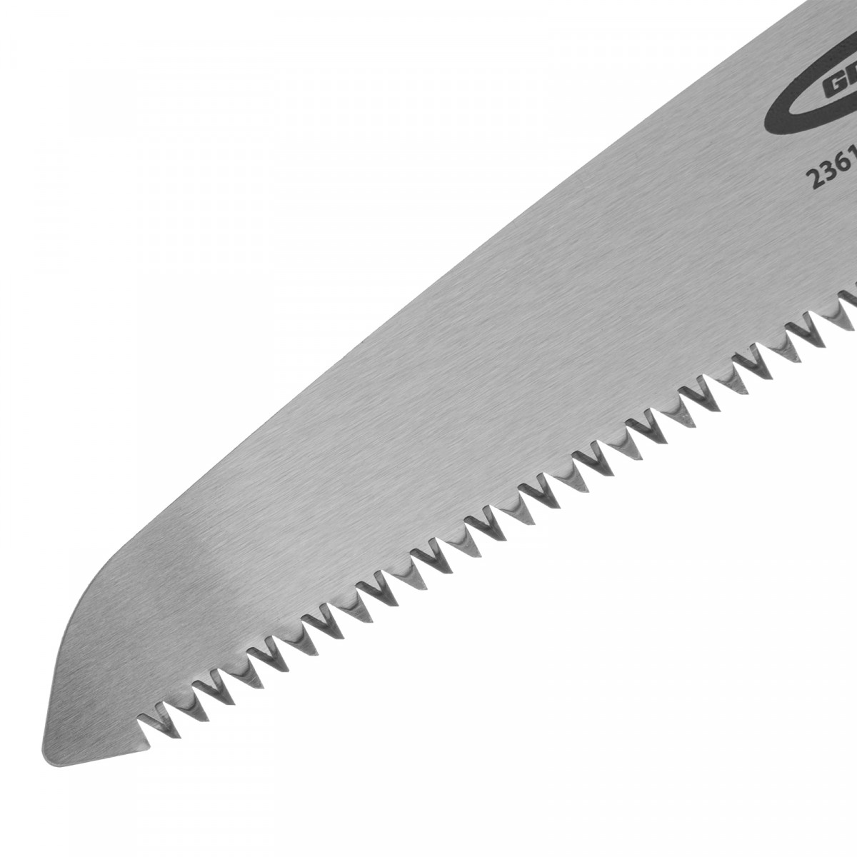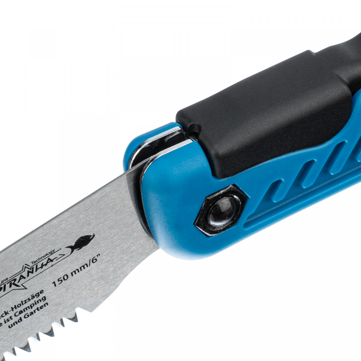 Складная пила по дереву Gross PIRANHA 23616 для кемпинга и сада с 2-компонентной рукояткой, полотном длиной 150 мм, подкаленными зубьями с шагом 9-10 TPI и 3D-заточкой, пригодится на пикнике, в походе или на дачном участке. Предназначена для продольной и поперечной распиловки древесины, подходит также для работ с фанерой, ДВП и ПВХ. Характеристики режущей кромки соответствуют требованиям всех международных стандартов: зубья с трехгранной заточкой и шагом 9-10 TPI обеспечивают быстрый и ровный распил. Благодаря складной конструкции пилу очень удобно хранить и брать с собой в поездки.