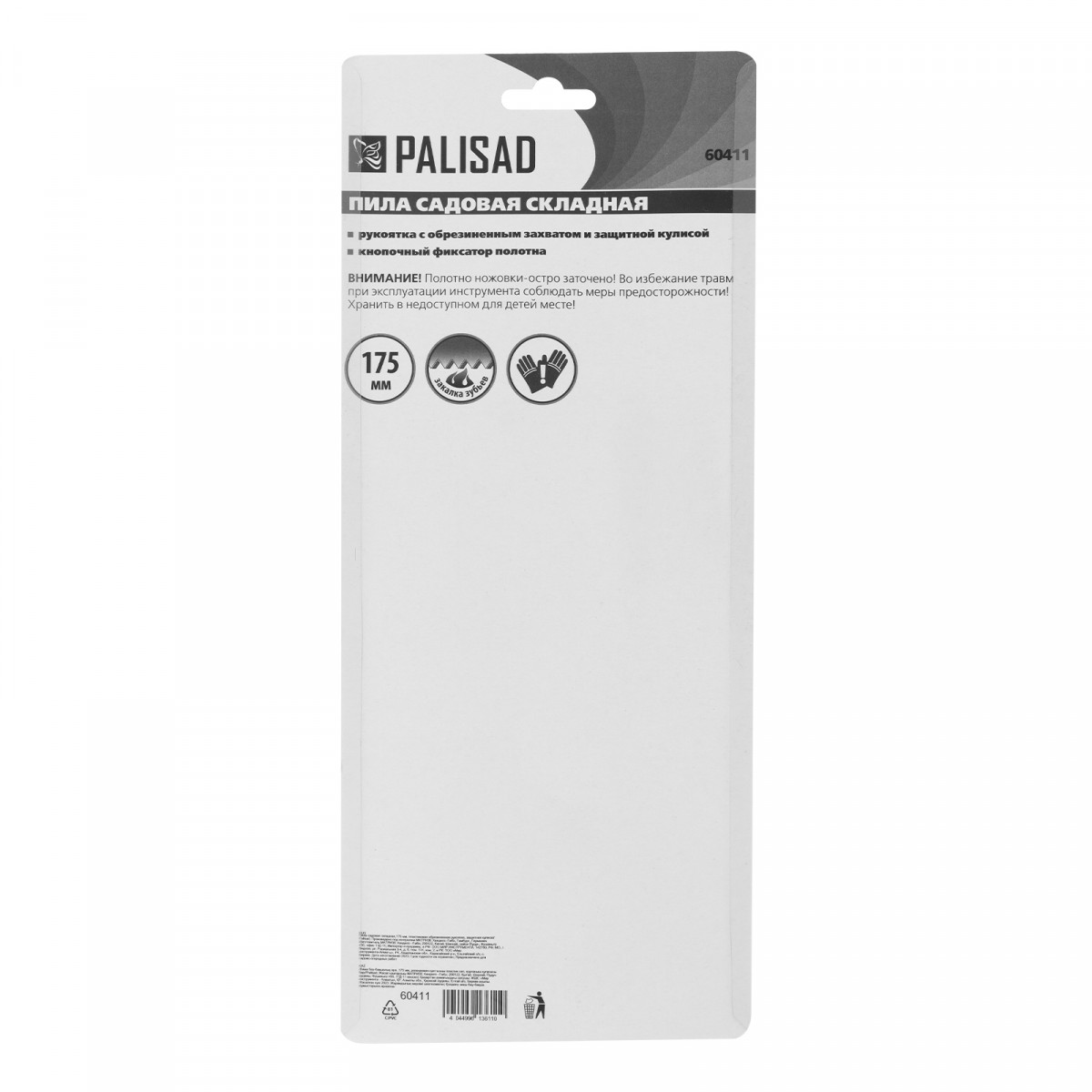 Пила садовая складная,175 мм, пластиковая обрезиненная рукоятка, защитная кулиса, Palisad