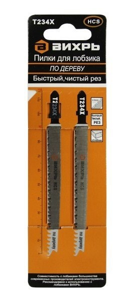 Пилки для лобзика Т234Х по дереву,быстрый,чистый рез,прогрессирующий зуб 116х90мм (2 шт) Вихрь