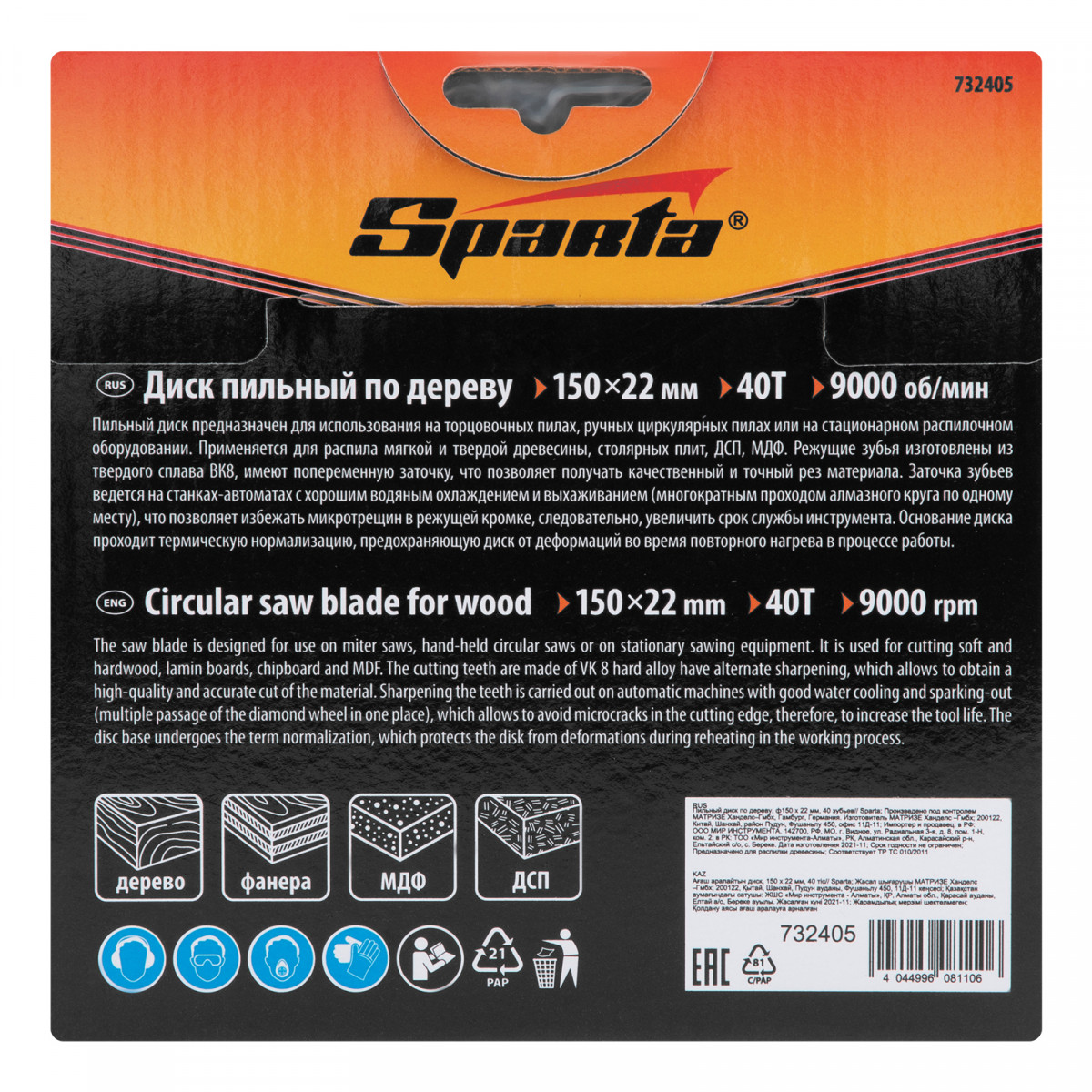 Пильный диск Sparta 732405 диаметром 150 х 22 мм, с 40 зубьями, используется для распила древесины мягких и твердых пород, фанеры, плит ДСП и МДФ. 40 зубьев обеспечивают оптимальное по скорости и качеству пиление. Благодаря попеременной заточке зубцов достигается высокое качество реза. Диск устанавливается на торцовочную, циркулярную пилу либо на распиловочный станок, применяется в бытовой сфере.
