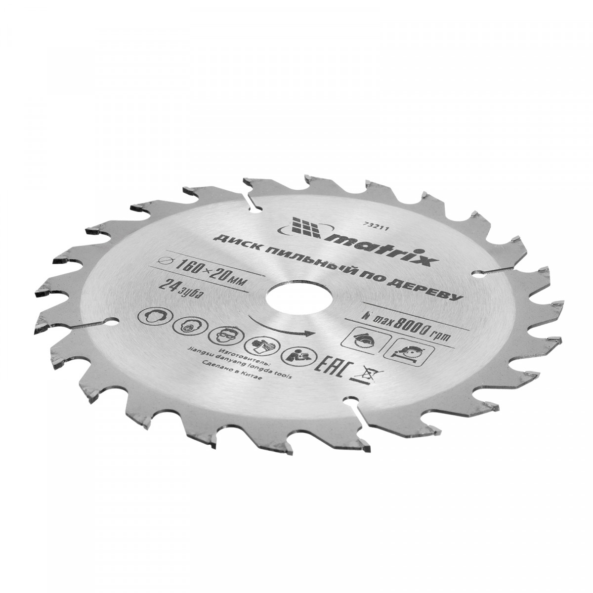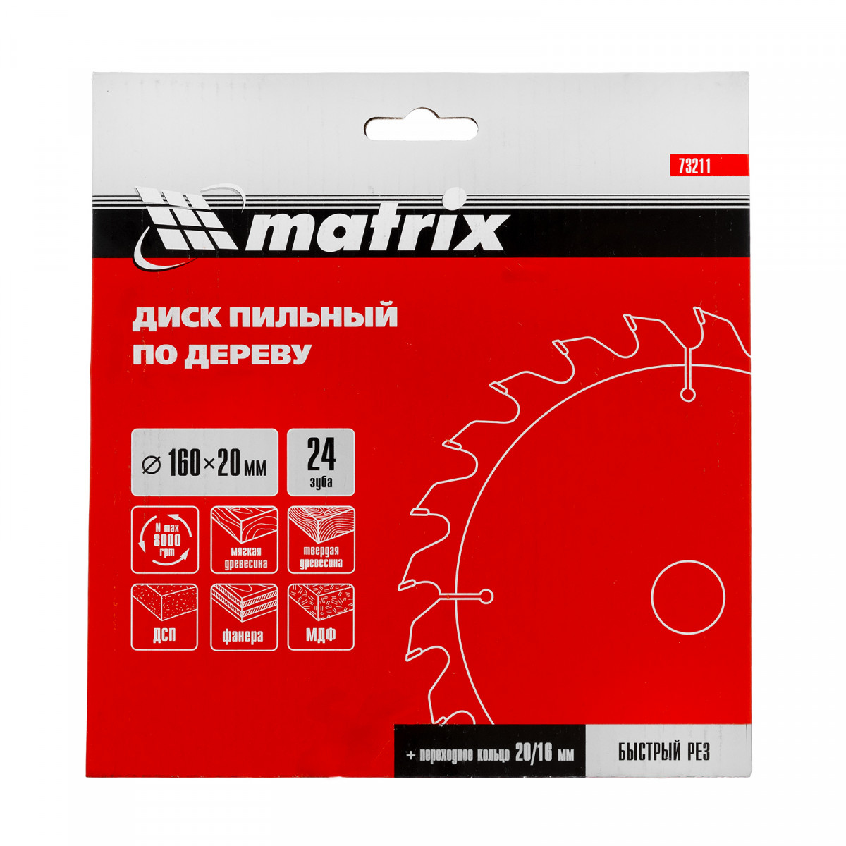 Пильный диск по дереву, 160 х 20 мм, 24 зуба, кольцо 16/20 Matrix Professional