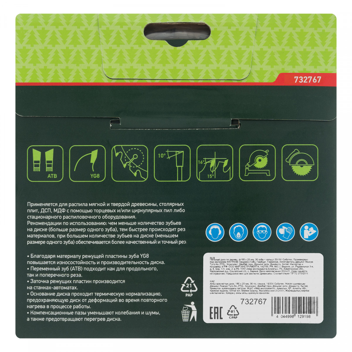 - Прочность и высокая производительность — основание диска изготовлено из стали 50, режущие пластины выполнены из твердого сплава YG8 и заточены с использованием алмазного абразива.