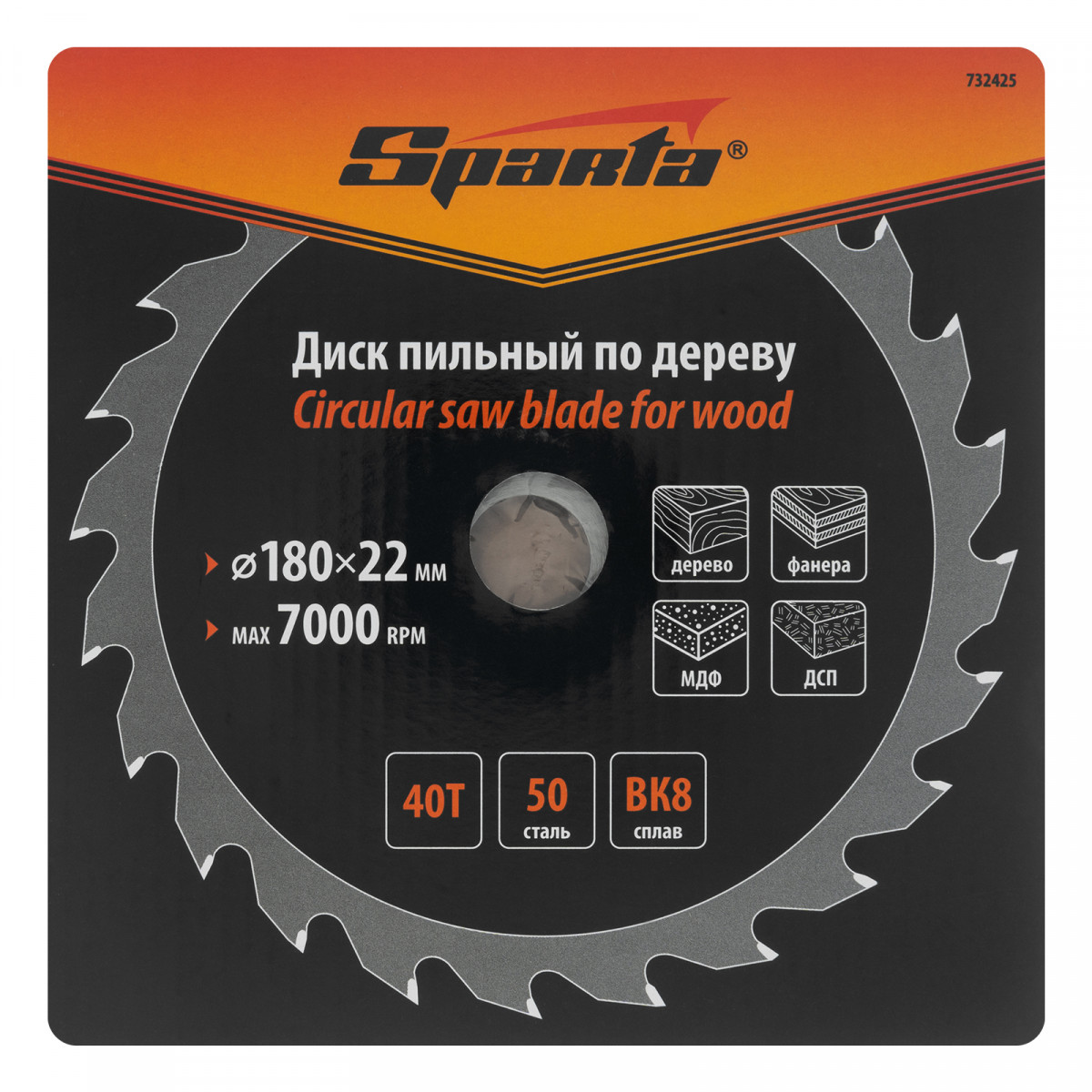 Пильный диск по дереву, 180 х 22 мм, 40 зубьев Sparta