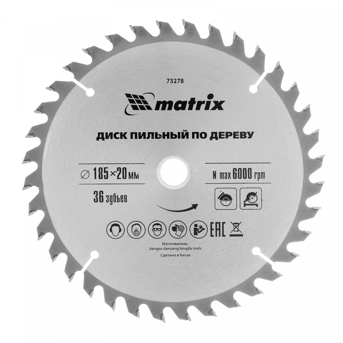 Пильный диск по дереву, 185 х 20 мм, 36 зубьев, кольцо 16/20 Matrix Professional