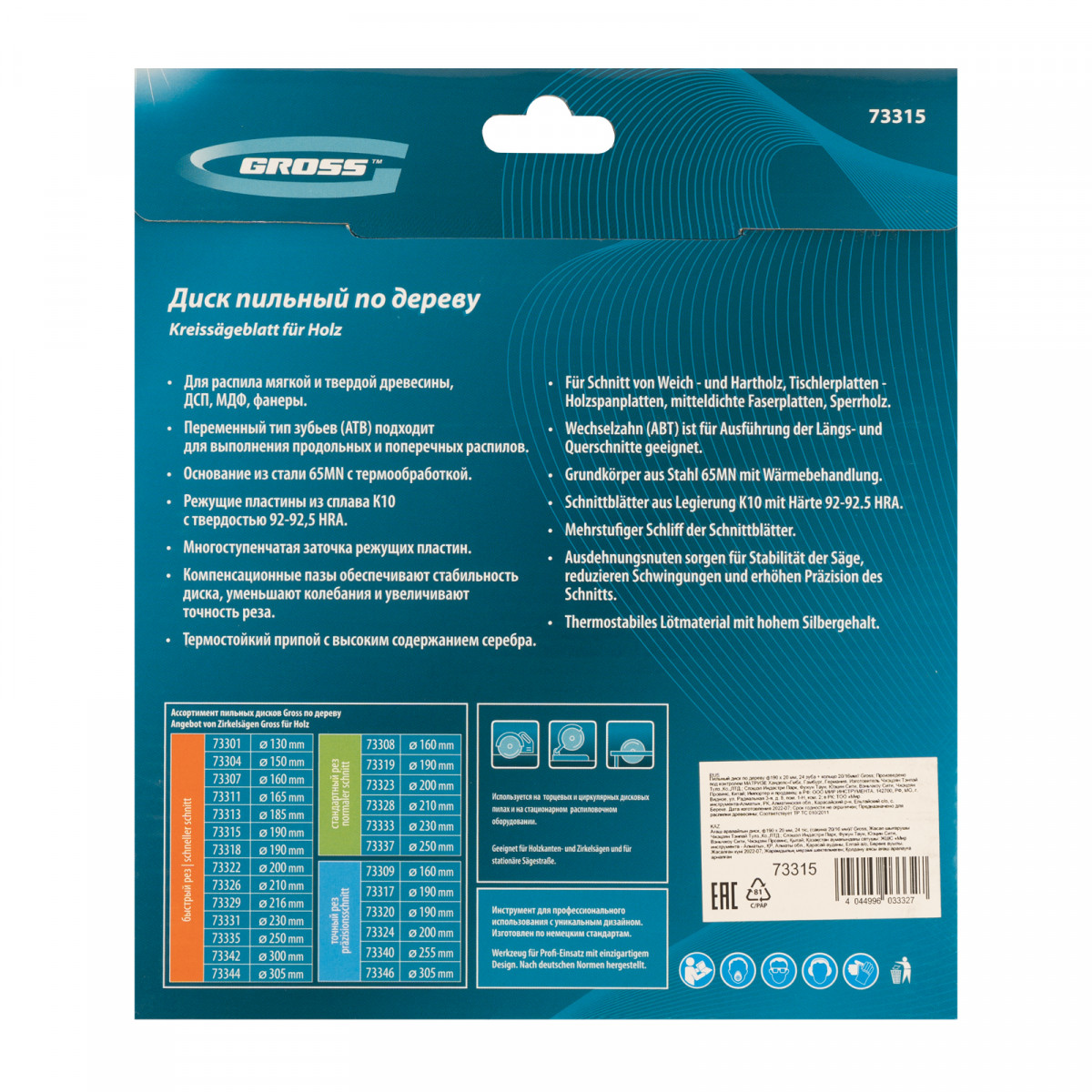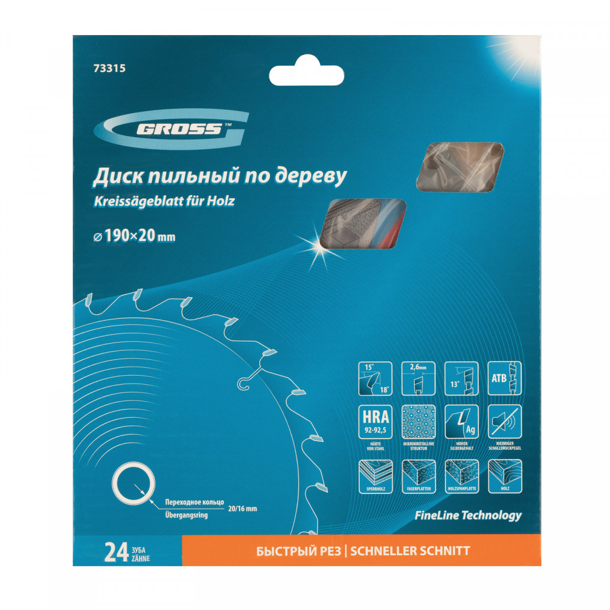 Пильный диск по дереву 190 x 20/16 x 24Т Gross