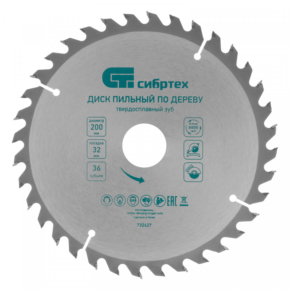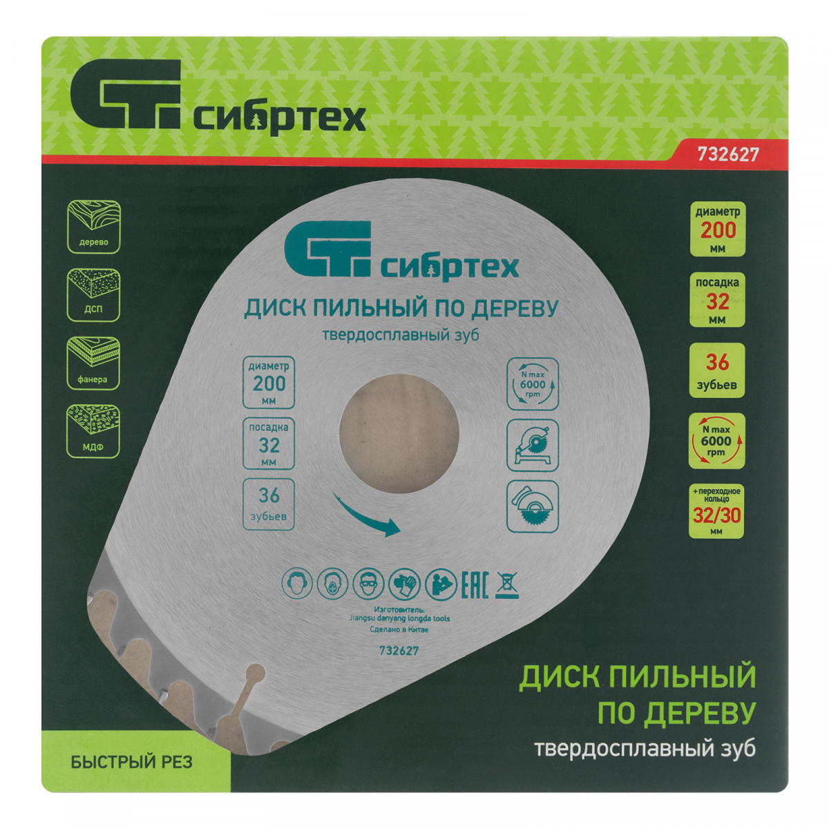 Пильный диск по дереву, 200 х 32 мм, 36 зубьев, кольцо 30/32 Сибртех