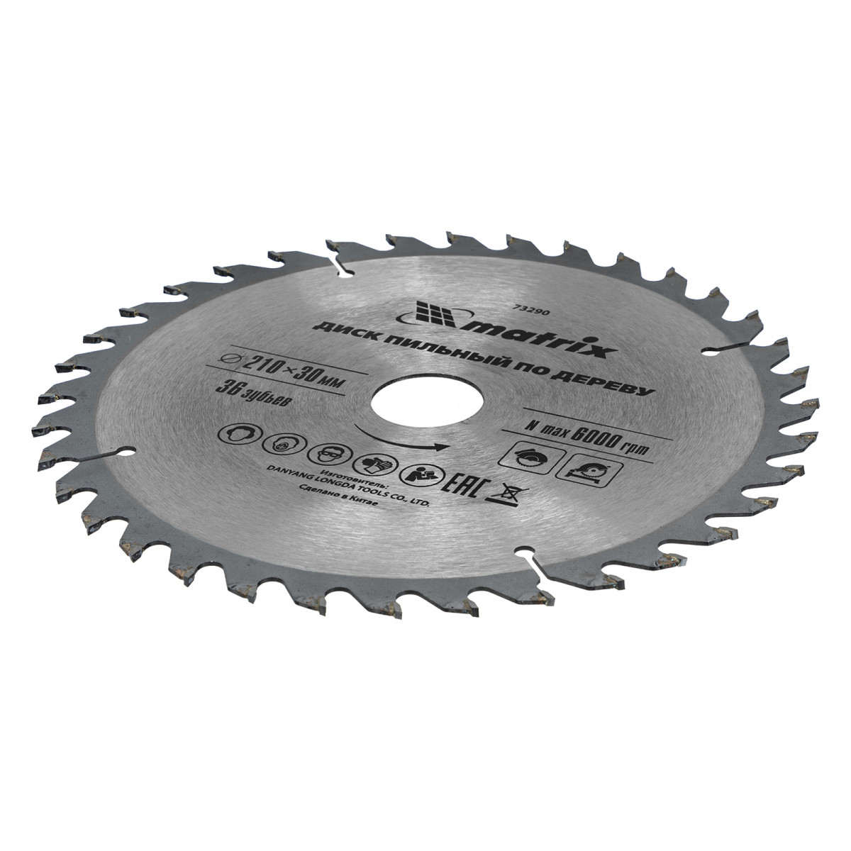 Пильный диск по дереву Matrix 73290 диаметром 210 х 30 мм, с 36 зубьями, — оснастка для циркулярных и торцовочных пил с соответствующим посадочным и внешним диаметром. Используется для продольного/поперечного реза материалов из мягкой и твердой древесины, ДСП, ДВП, фанеры, столярных плит. Диск подходит для бытового и профессионального применения.
