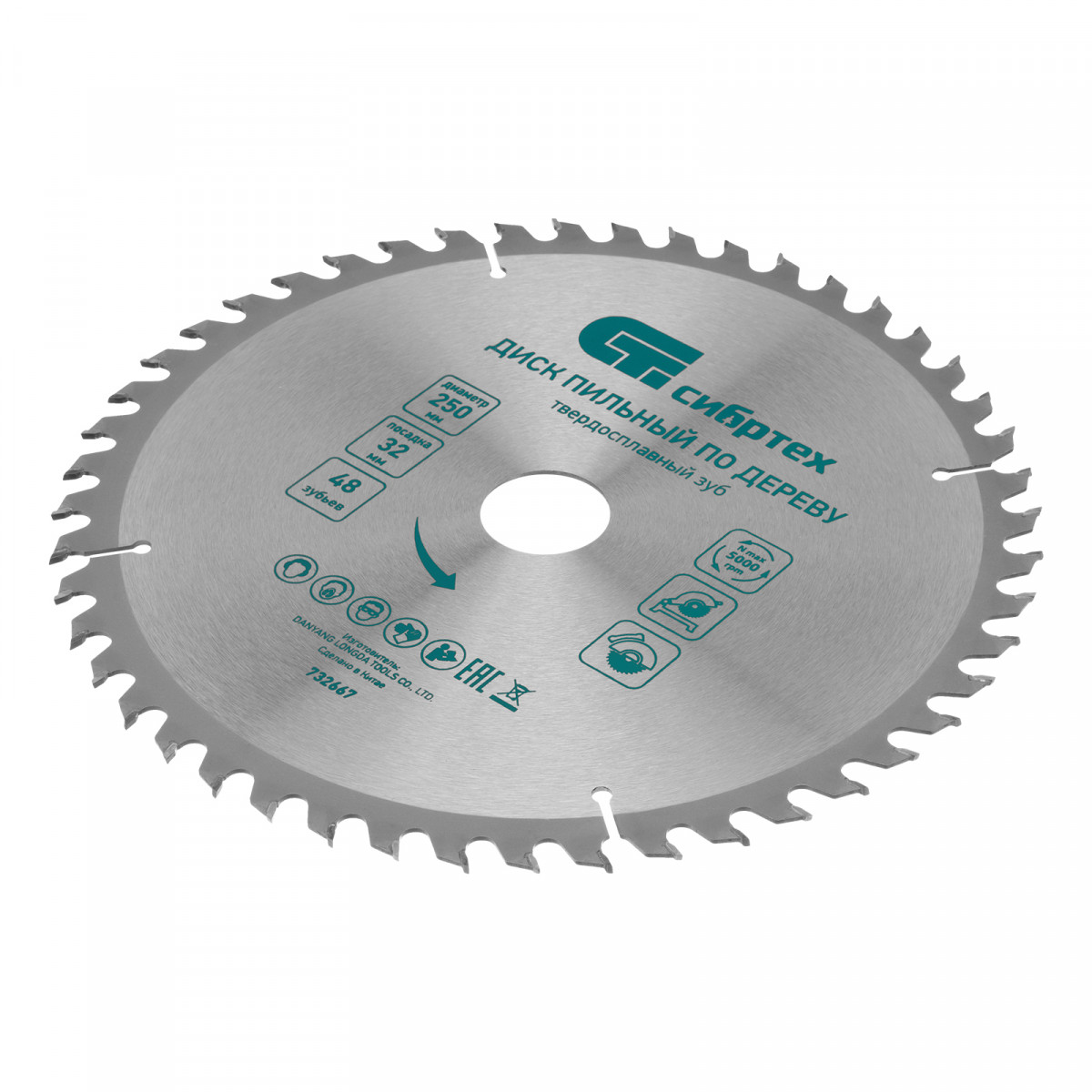 Пильный диск по дереву, 250 х 32 мм, 48 зубьев Сибртех