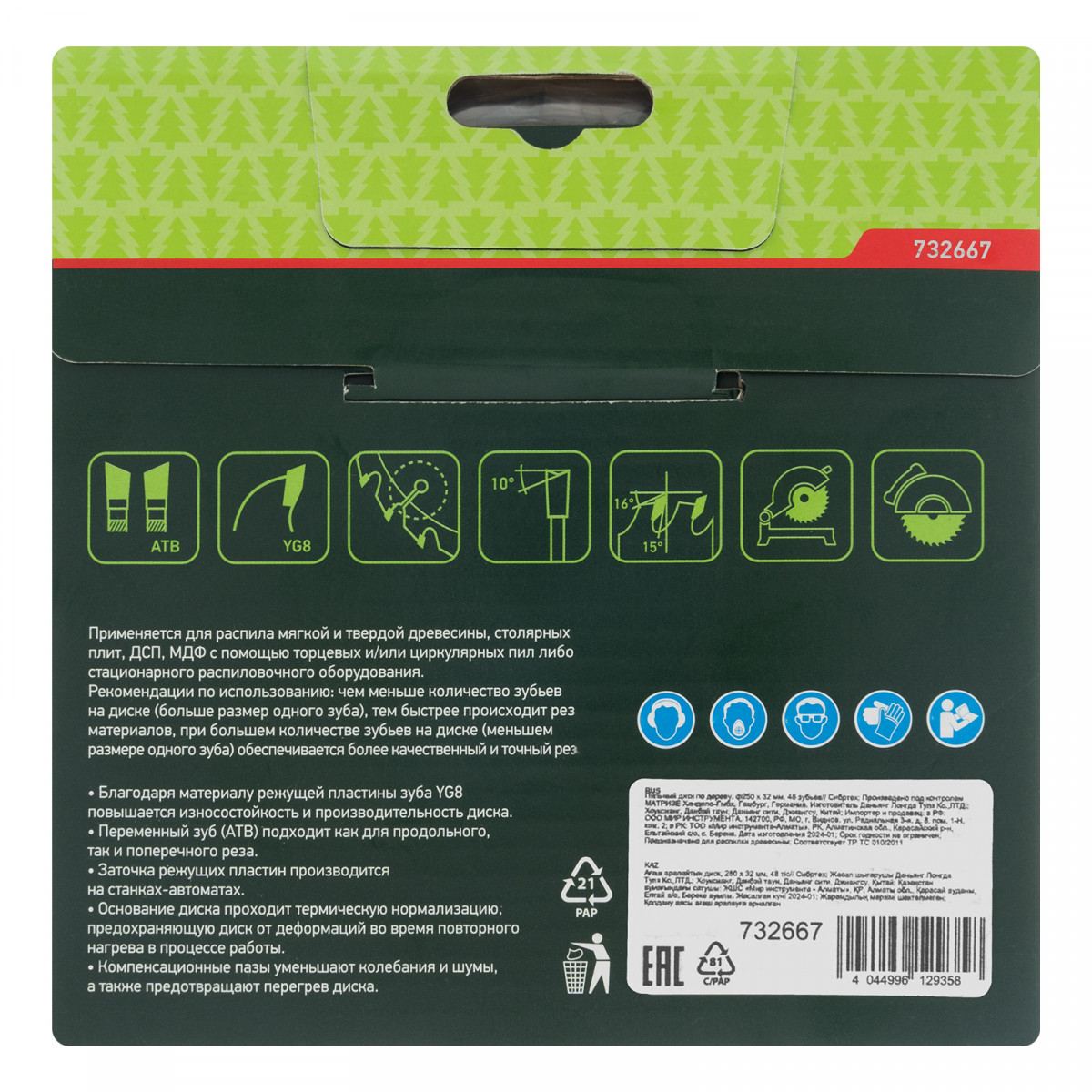 Пильный диск Сибртех 732667 диаметром 250 х 32 мм, с 48 зубьями, используется с торцовочными и циркулярными пилами, а также с распиловочными станками. Предназначен преимущественно для поперечного пиления древесины мягких и твердых пород, фанеры, МДФ и ДСП. Благодаря мелким зубьям достигается оптимальное соотношение скорости и качества реза. Диск применяется для выполнения строительных, ремонтных работ, а также для решения бытовых задач.