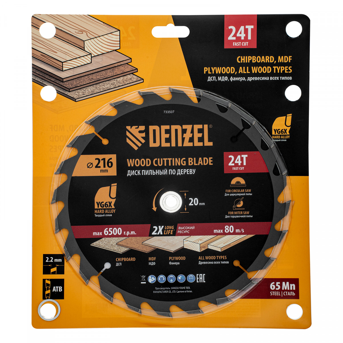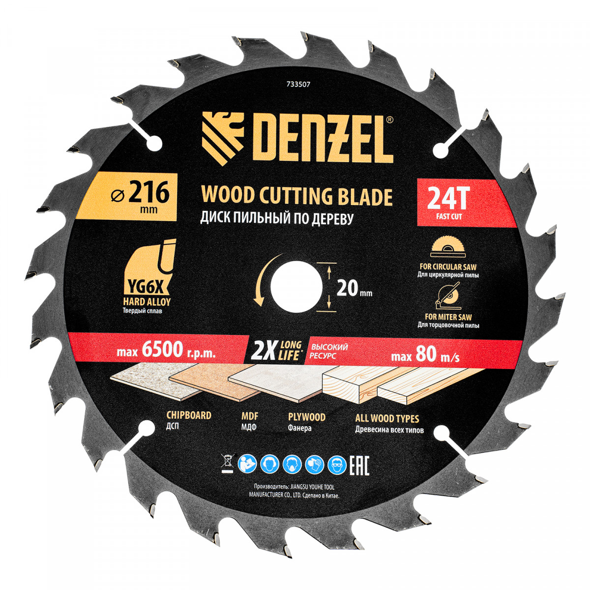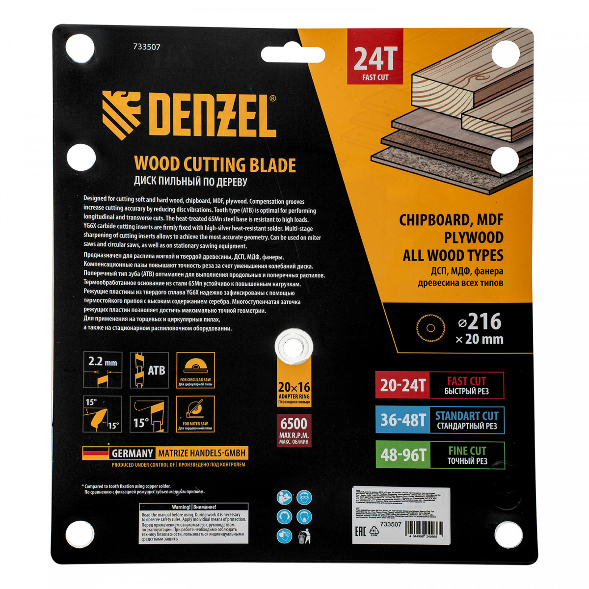Пильный диск по дереву ф216 х 20 мм, 24 зубьев Denzel