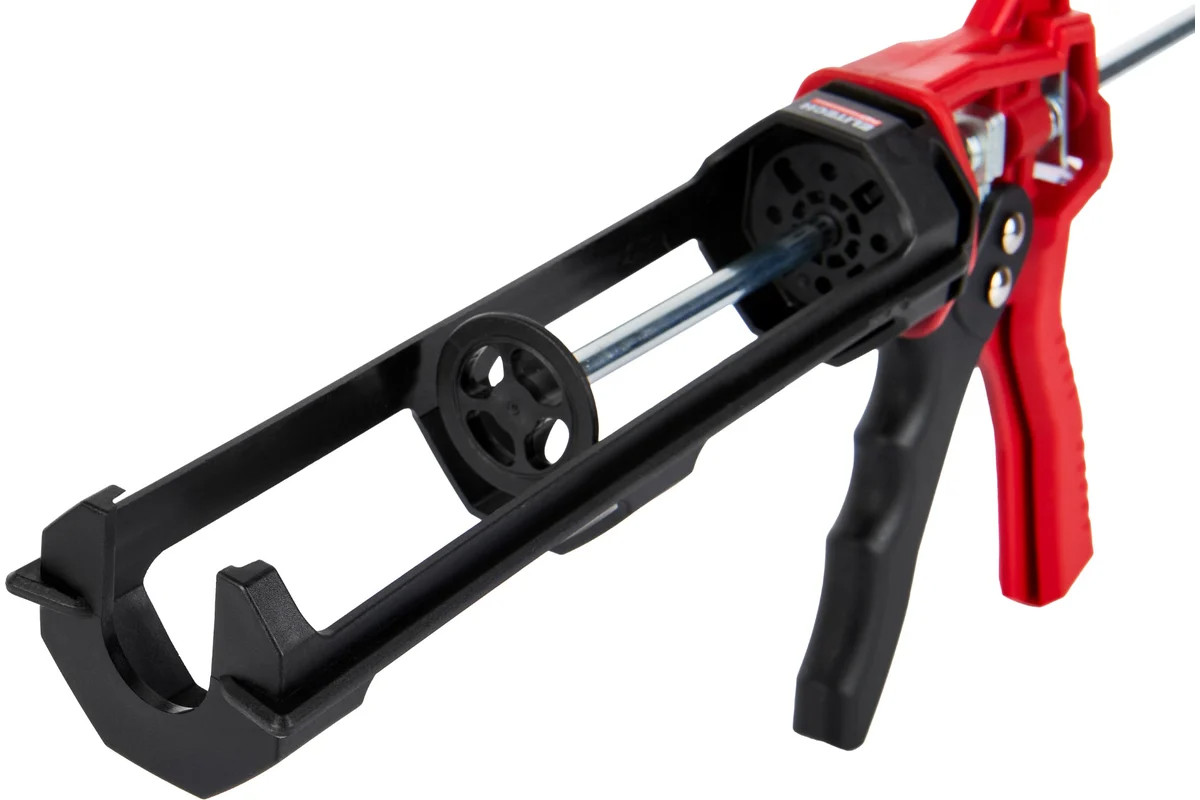 Пистолет с поворотным каркасным держателем и усилием на штоке до 1350 Н (135 кг) используется для выдавливания из тубы герметизирующих или клеящих составов.