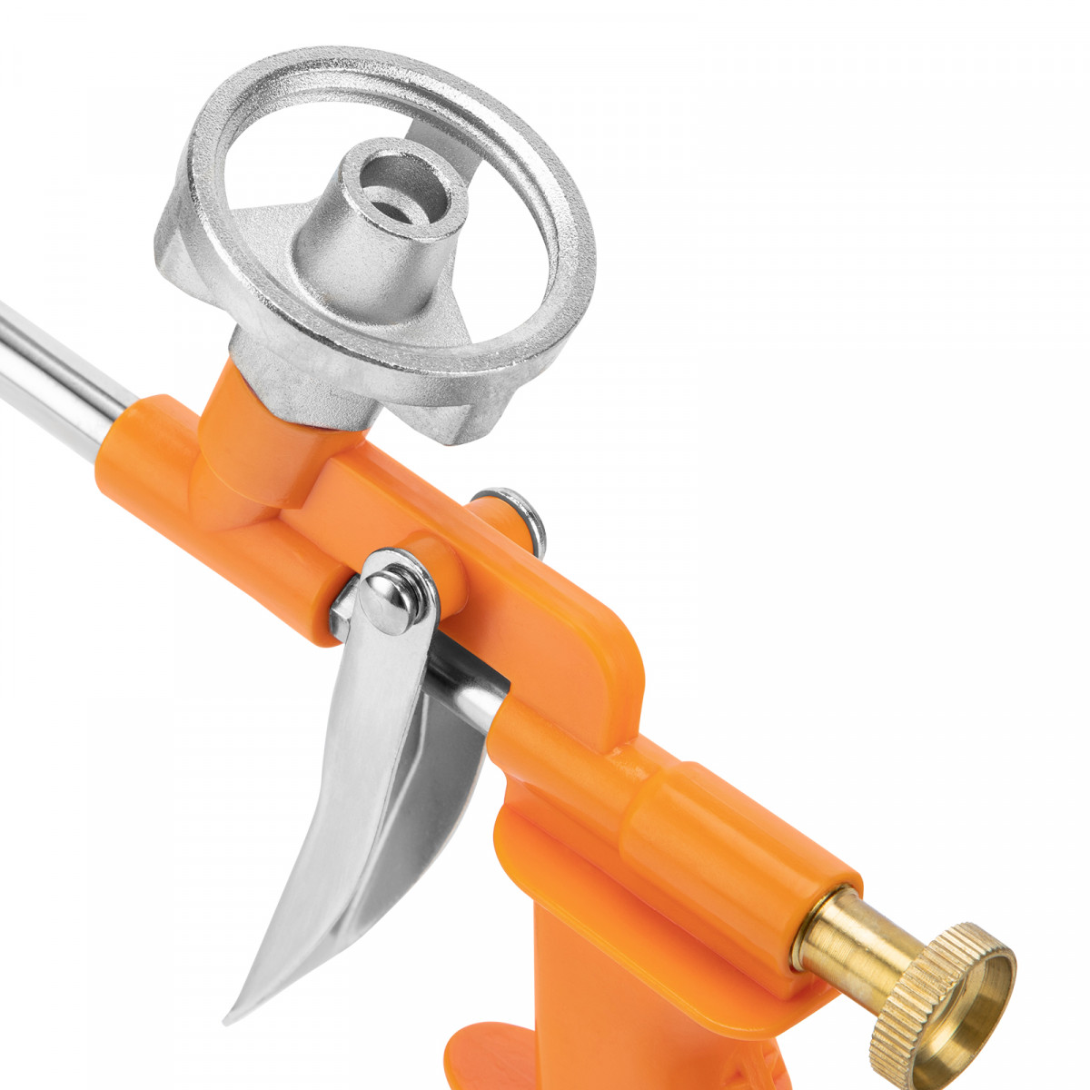 Пистолет для монтажной пены Sparta 88673 с облегченным корпусом используется для уплотнения и герметизации различных конструкций, заполнения трещин и пустот. Корпус изготовлен из ударопрочного пластика, а ствол из стали, что снижает риск поломки пистолета в случае случайного удара или падения. Металлический адаптер повышает надежность инструмента. Пистолет будет полезен строителям, мастерам по ремонту, а также пригодится в быту — специальных знаний для его эксплуатации не требуется.