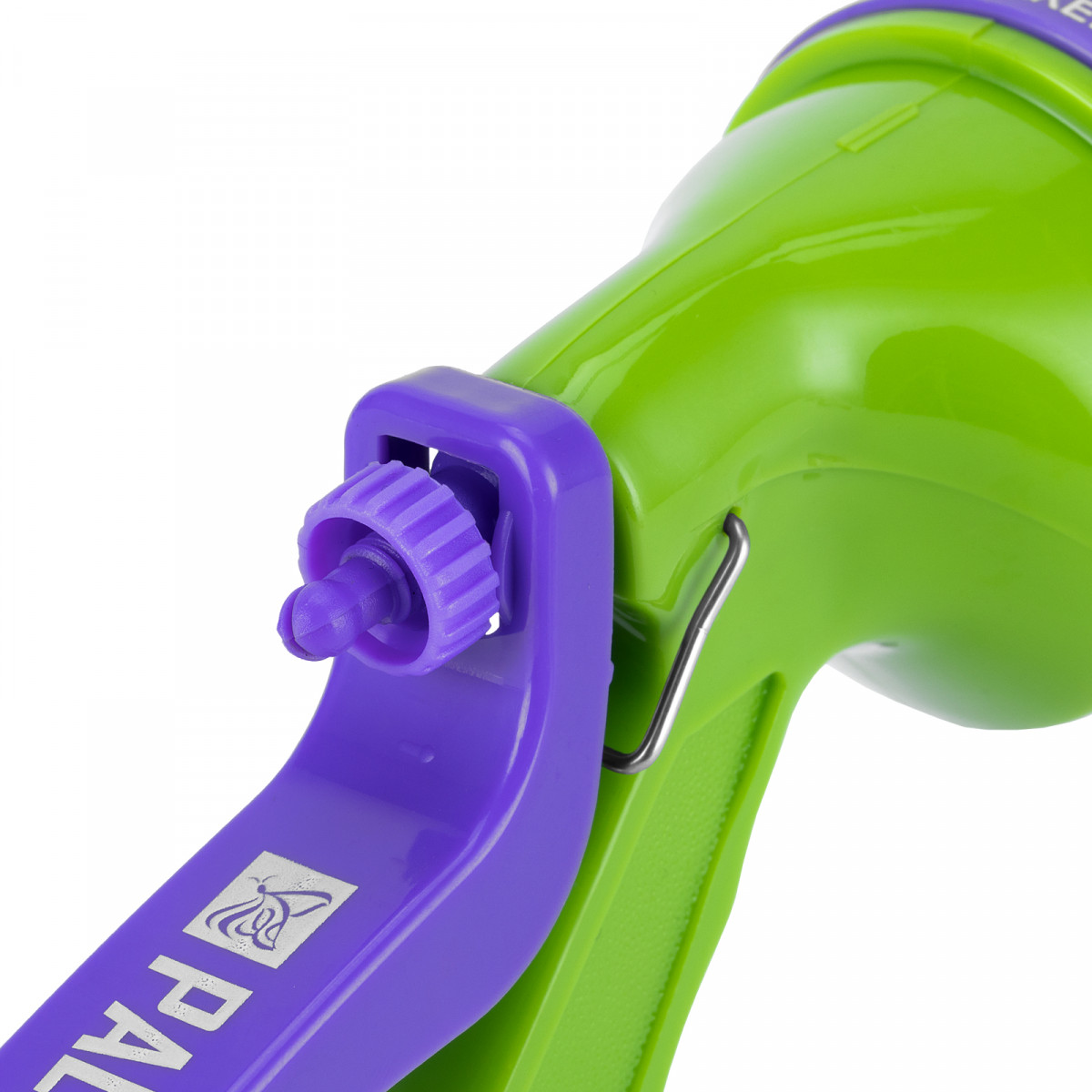 Пистолет-распылитель Palisad 65161 работает в 7 режимах: водоподача в виде жесткой, плоско-горизонтальной/вертикальной струи, обычного и мелкого тумана, с задействованием всех распыляющих отверстий, а также может использоваться как душ-пистолет. Относится к универсальным приспособлениям, т.к. совместим со всеми системами полива Palisad. Он значительно повышает скорость работы и поможет дачникам и коммунальщикам ухаживать за участком, садом, парком: поливать растения, газон, чистить дорожки, рабочий инвентарь и т.д.