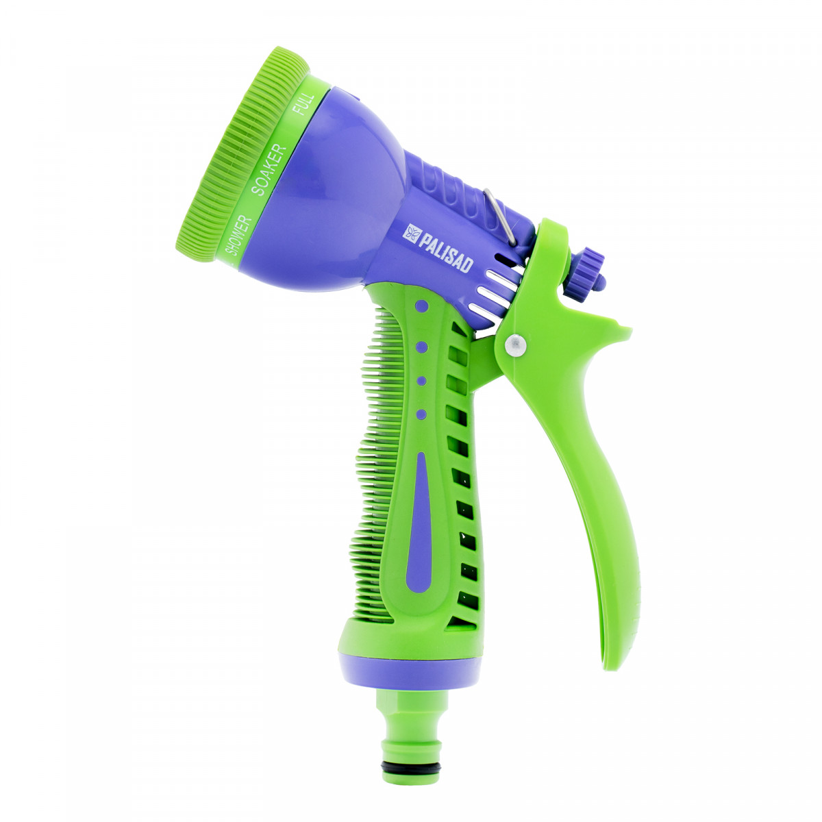 Пистолет-распылитель Palisad 65146 с 8 режимами работы предназначен для использования с любой из поливочных систем ТМ Palisad. Он повышает удобство и скорость работы при орошении растений, газонной травы, очищении садовых дорожек, мойке инструментов и др. работ, поэтому пригодится коммунальщикам и дачникам. Приспособление обеспечивает комфортную работу в 8 режимах: мелкодисперсном, конусном, сочащемся, распылении типа «туман» или душ, подаче жесткой, двойной плоско-вертикальной/горизонтальной струи.