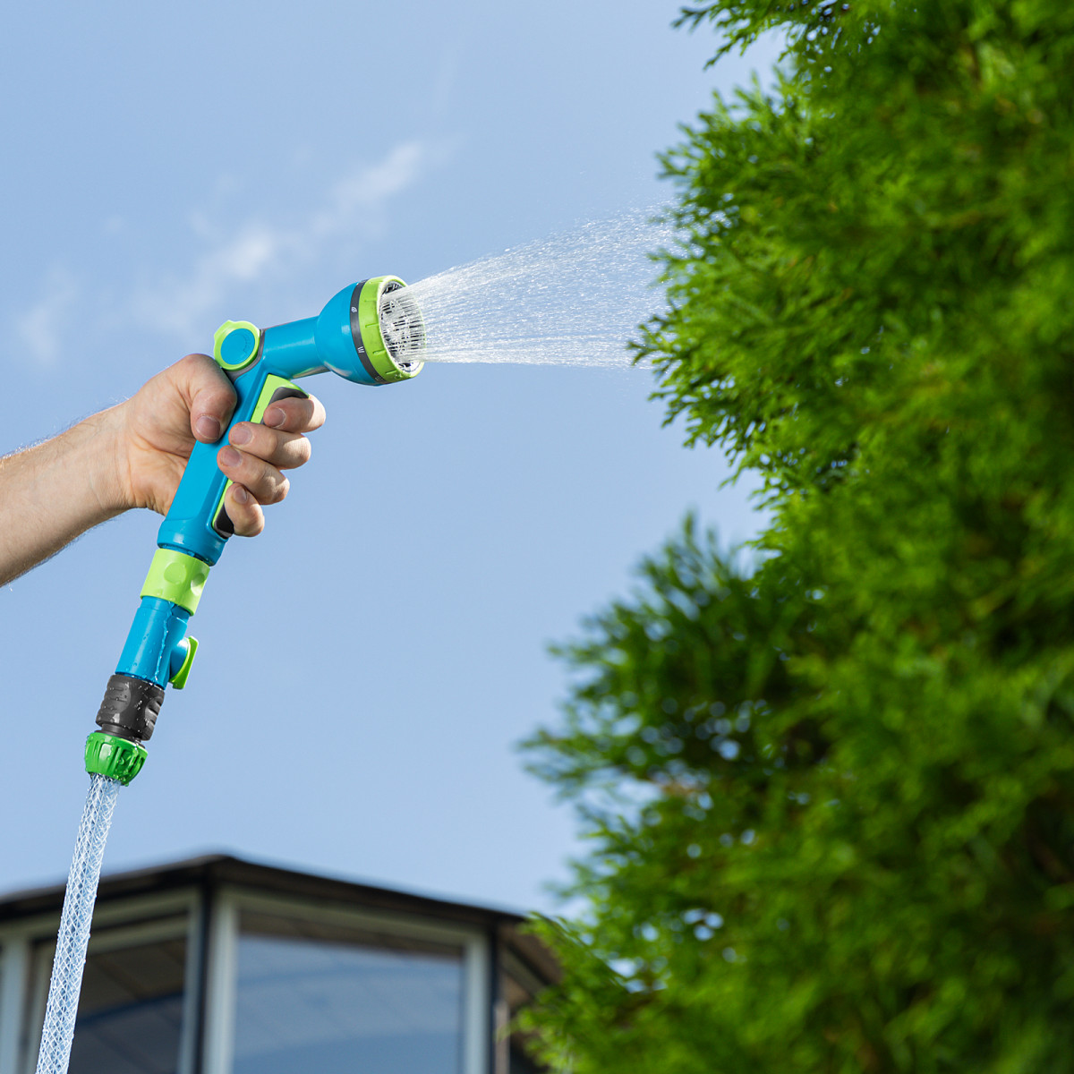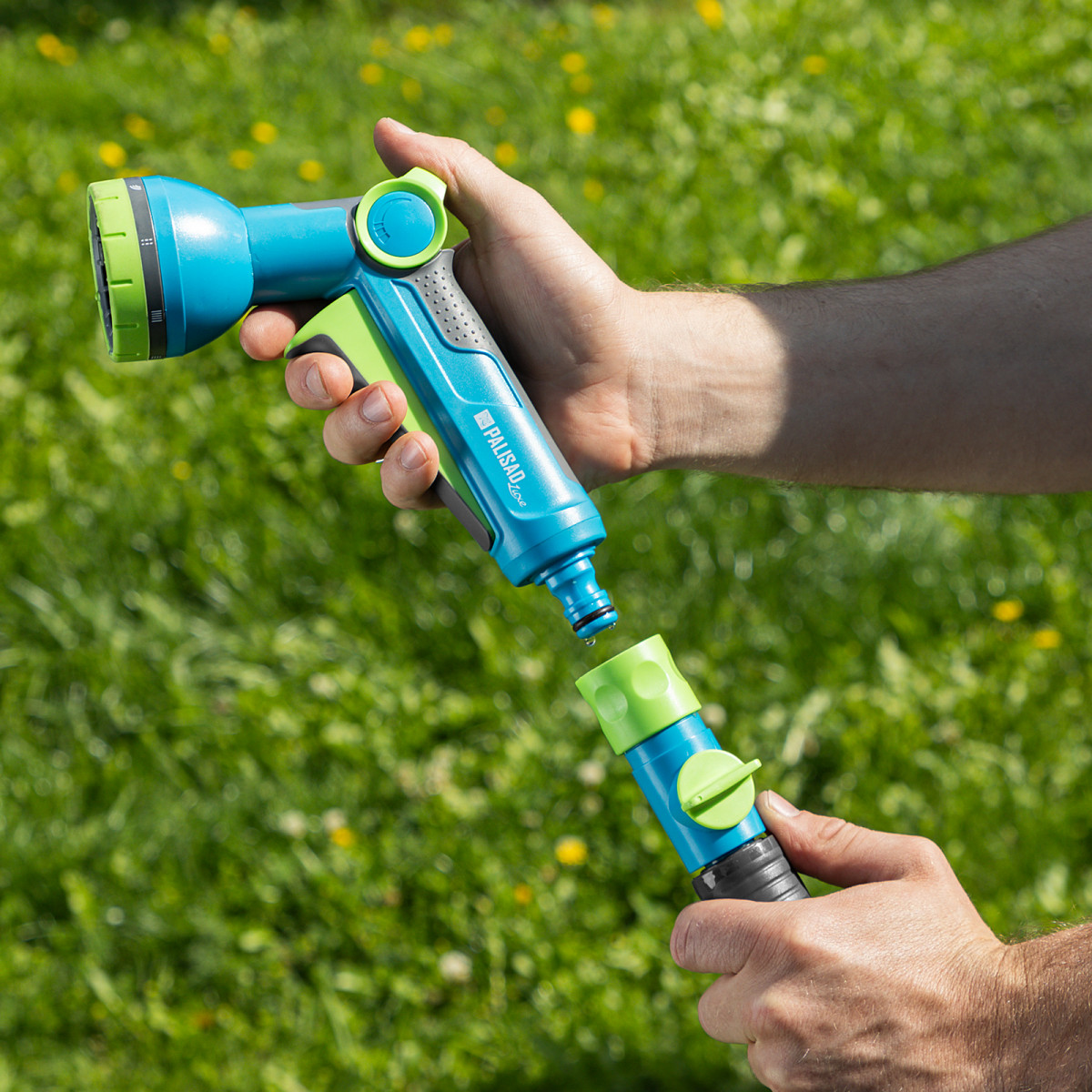 Регулируемый пистолет-распылитель Palisad LUXE 65899 с курком и 8 режимами работы подключается к любым поливочным системам ТМ Palisad и Palisad LUXE для ручного орошения растений на участке, в сквере или парке, а также для мытья дорожек и садовых принадлежностей. 8 режимов распыления позволяют выбрать необходимый тип струи для решения различных задач. Пистолет будет полезен садоводам и сотрудникам коммунальных служб.