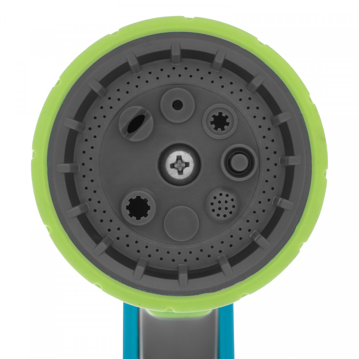- 8 режимов полива — конусный, вертикальный и горизонтальный, душ, жесткая струя, веер, туман, а также полный полив.