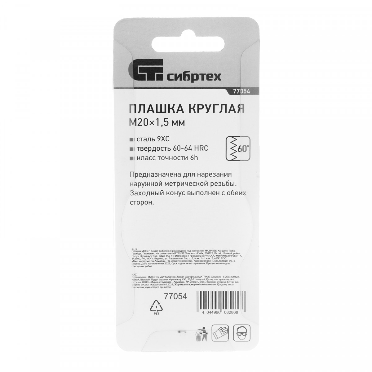 Плашка Сибртех 77054 типоразмера М20 х 1,5 мм предназначена для нарезания внешней метрической резьбы. Проста в использовании, поэтому пригодится даже начинающему мастеру для проведения слесарных и монтажных работ в быту. Цельная конструкция плашки позволяет полностью захватить деталь и нарезать высокоточную резьбу за один проход.