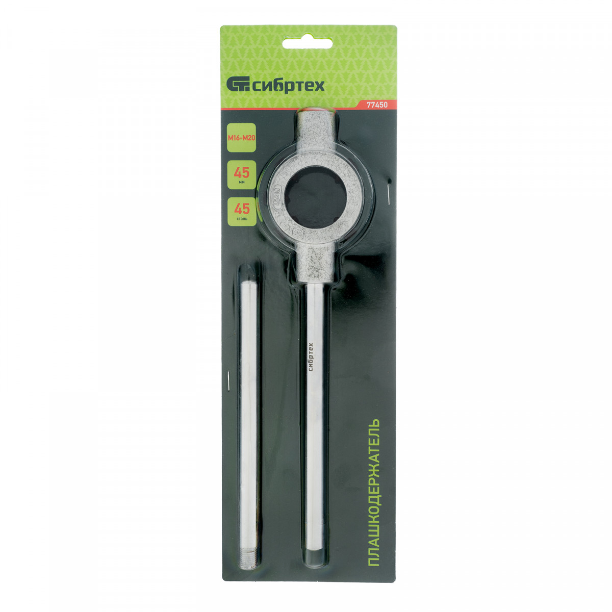 Плашкодержатель Сибртех 77450 предназначен для захвата плашек диаметром 45 мм. Пригодится для ручного нарезания резьбы при проведении слесарных и монтажных работ. Плашкодержатель позволяет приложить необходимое усилие для создания ровной резьбы.