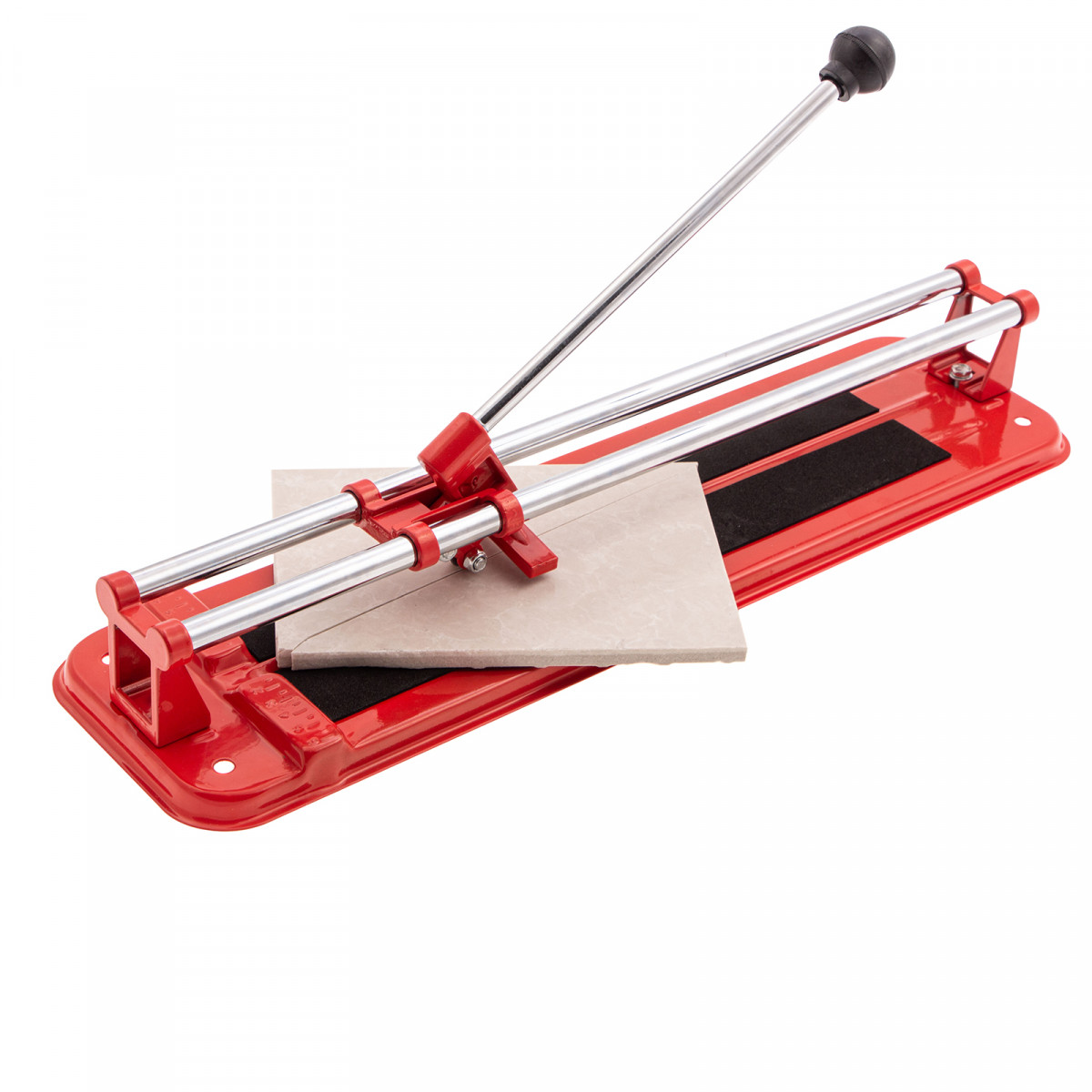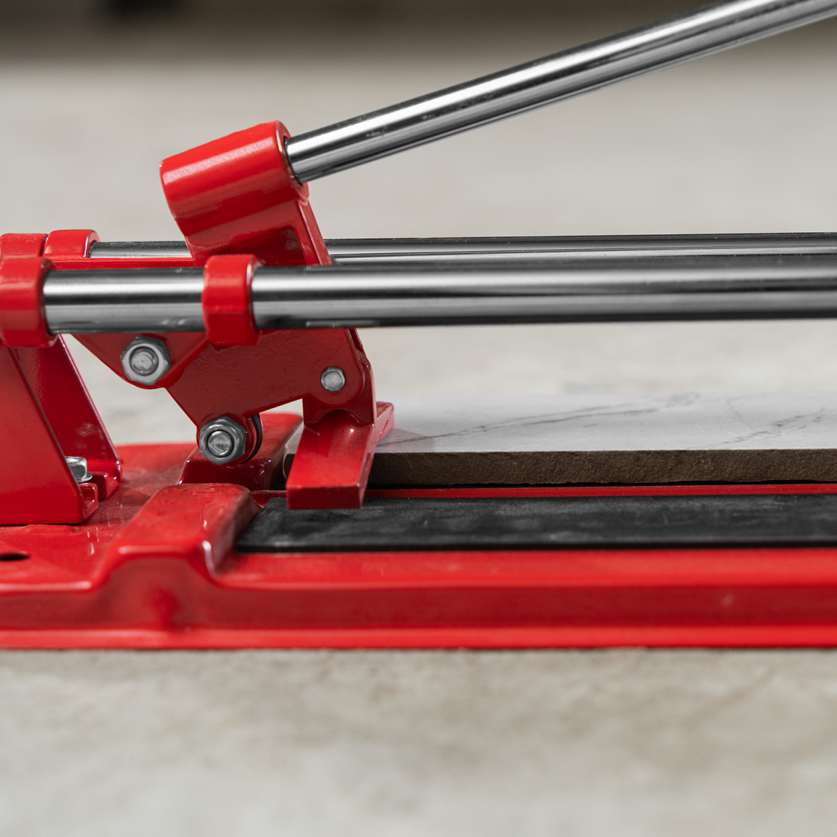 - Высокое качество работы — стальное основание обеспечивает устойчивость плиткореза, мягкие амортизирующие накладки предотвращают смещение плитки.