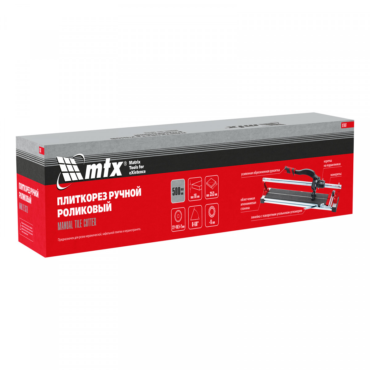 Рельсовый плиткорез MTX 87687 способен резать плитку длиной до 500 мм и толщиной до 16 мм для придания ей необходимых размеров. Мощный разделитель справляется с резкой не только керамической, но и керамогранитной плитки. Продуманная конструкция позволяет производить разлом в любой точке поверхности плитки. Инструмент используется во время проведения облицовочных работ.
